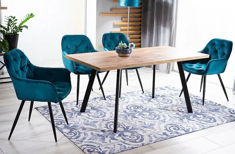 Krzesło Cherry Velvet to oryginalna propozycja tapicerowanego krzesła, które zapewni nam wyjątkowy komfort siedzenia. Mebel wykonany został wyłącznie z materiałów wysokiej jakości. Siedzisko tapicerowane jest wytrzymałą i niezwykle miękką w dotyku tkaniną aksamitną Bluvel 85 w lekkim turkusowym kolorze. Przód siedziska posiada wyjątkowe, ozdobne pikowania. Całość konstrukcji spoczywa na solidnych, metalowych nogach wybarwionych w czarnym, matowym kolorze. Krzesło Cherry Velvet pięknie ozdobi wnętrze jadalni, czy też restauracji. Jest to niezwykle oryginalny mebel, który z racji swojego klasycznego wyglądu będzie pasować do większości wnętrz. Każdy element krzesła Cherry Velvet został doskonale dopracowany.
