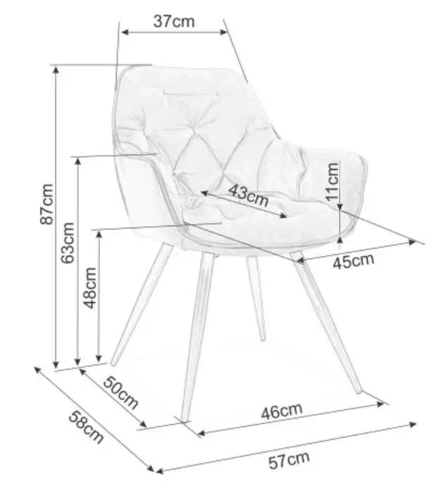 - Metalowe, czarne, matowe nóżki - dodają krzesłu niezwykłej gracji i eleganckiego designu