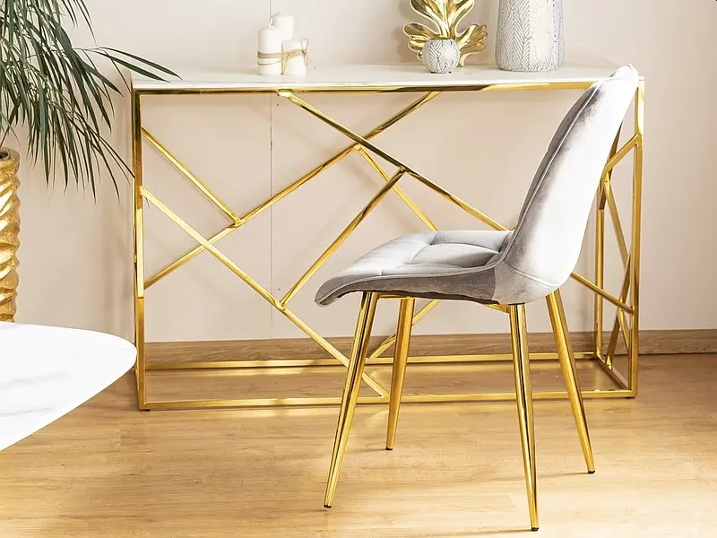 - Złote, metalowe nóżki - sprawiają, że krzesło wspaniale wpisuje się w nowoczesny design glamour