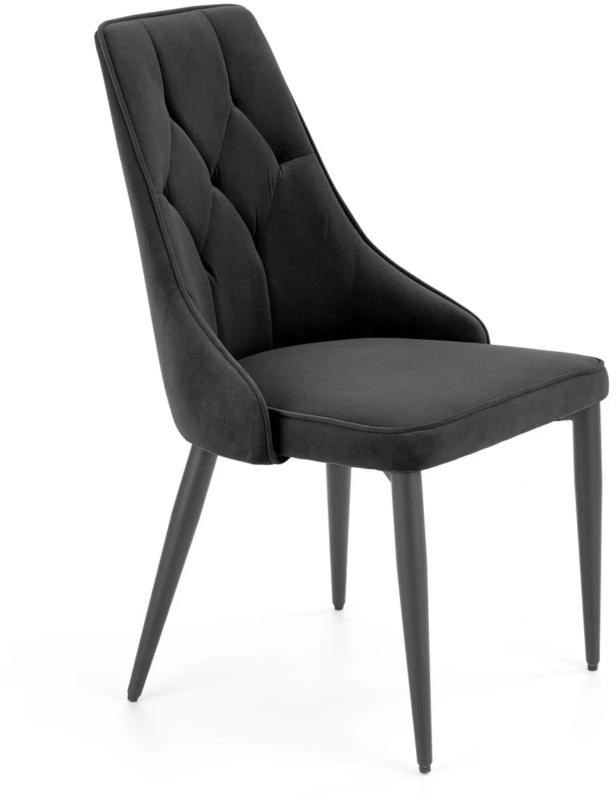 Krzesło tapicerowane K365 z pikowanym oparciem tkanina aksamitna do jadalni salonu czarny