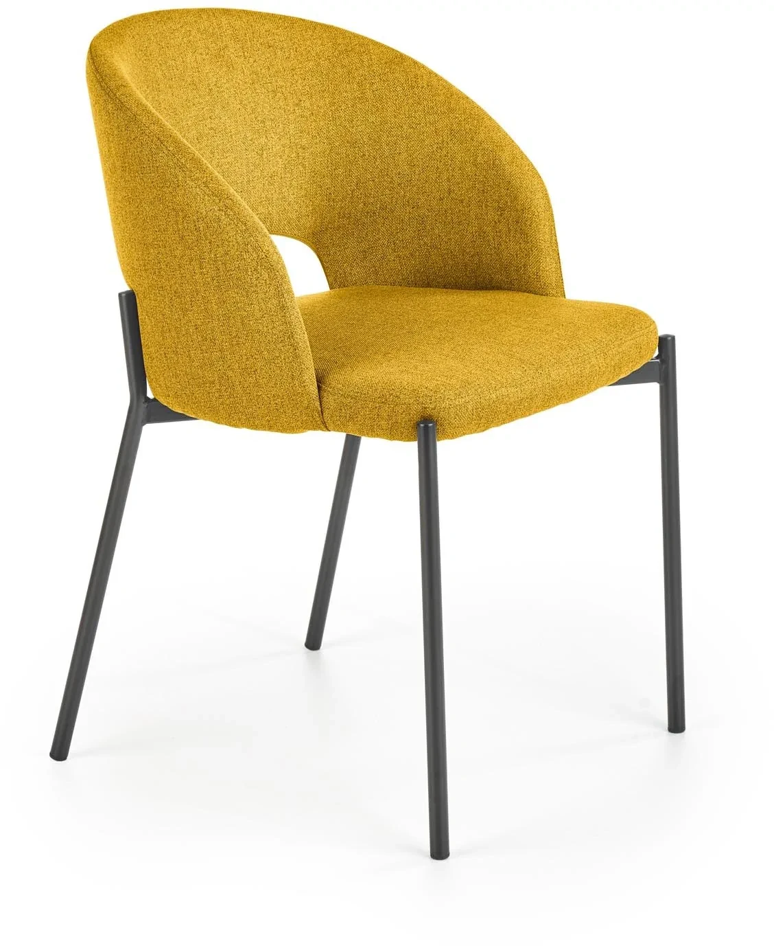 Krzesło tapicerowane K373 z wycięciem w oparciu kubełkowe do jadalni musztardowy