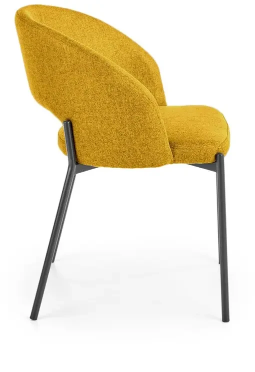 Stylowe krzesło K373 w kolorze musztardowym to idealne połączenie elegancji i funkcjonalności. Tapicerowane miękką tkaniną siedzisko oraz oparcie zapewniają wysoki komfort użytkowania, a solidny metalowy stelaż malowany proszkowo w kolorze czarnym dodaje całości nowoczesnego charakteru. Krzesło świetnie odnajdzie się zarówno w jadalni, jak i w salonie czy biurze, wprowadzając do wnętrza ciepły, przytulny klimat.