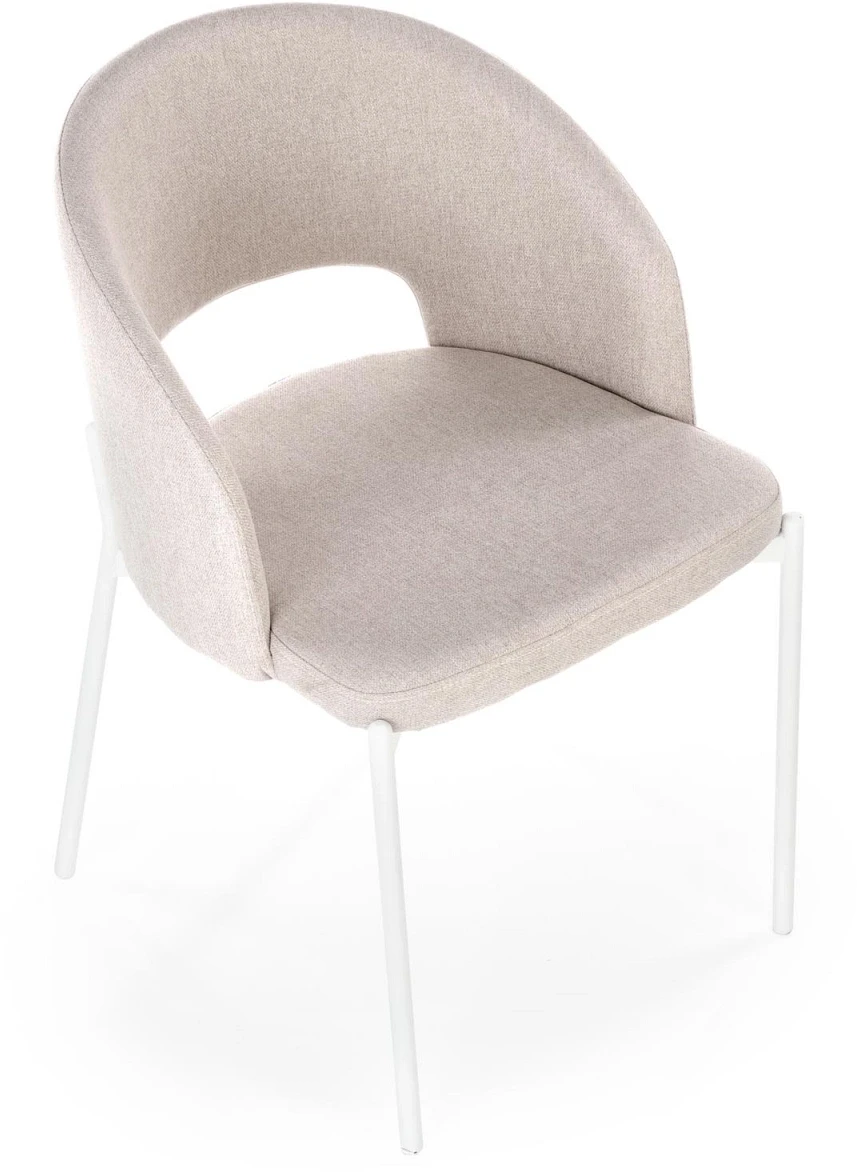 Krzesło K486 to propozycja, która doskonale łączy subtelny design z wysokim komfortem użytkowania. Jego miękka, beżowa tapicerka wnosi do wnętrza ciepło i elegancję, tworząc przyjazną atmosferę sprzyjającą zarówno codziennemu relaksowi, jak i spotkaniom przy stole. Zaokrąglone oparcie z charakterystycznym wycięciem nadaje bryle lekkości i sprawia, że mebel nie tylko dobrze wygląda, ale też oferuje ergonomiczną pozycję podczas siedzenia. Smukłe, białe nogi ze stali malowanej proszkowo gwarantują stabilność, a jednocześnie podkreślają nowoczesny charakter mebla. Krzesło K486 idealnie odnajdzie się w kuchni, jadalni, a nawet w przestrzeni biurowej jako elegancki akcent wystroju.