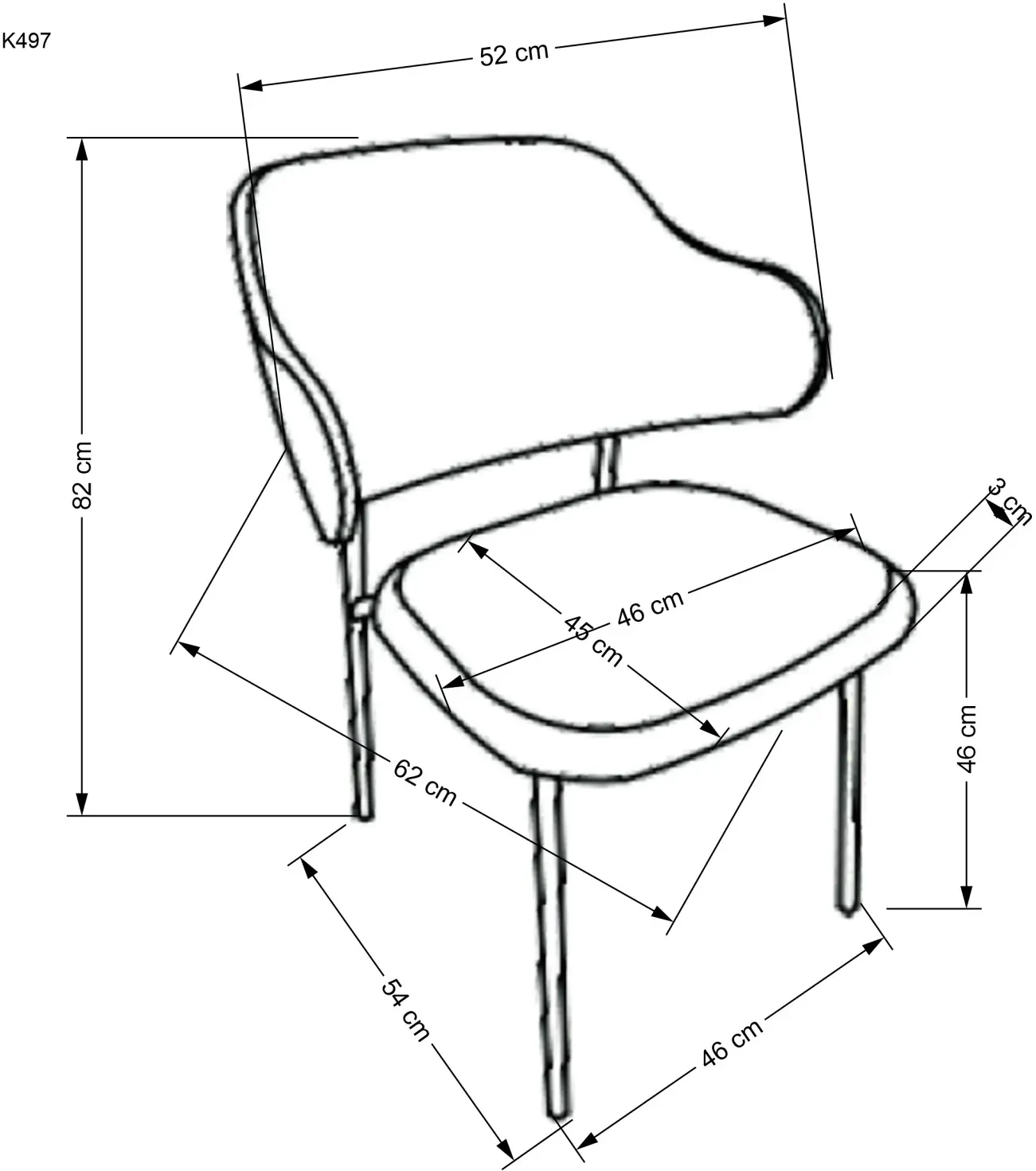 Wymiary krzesła K497:
