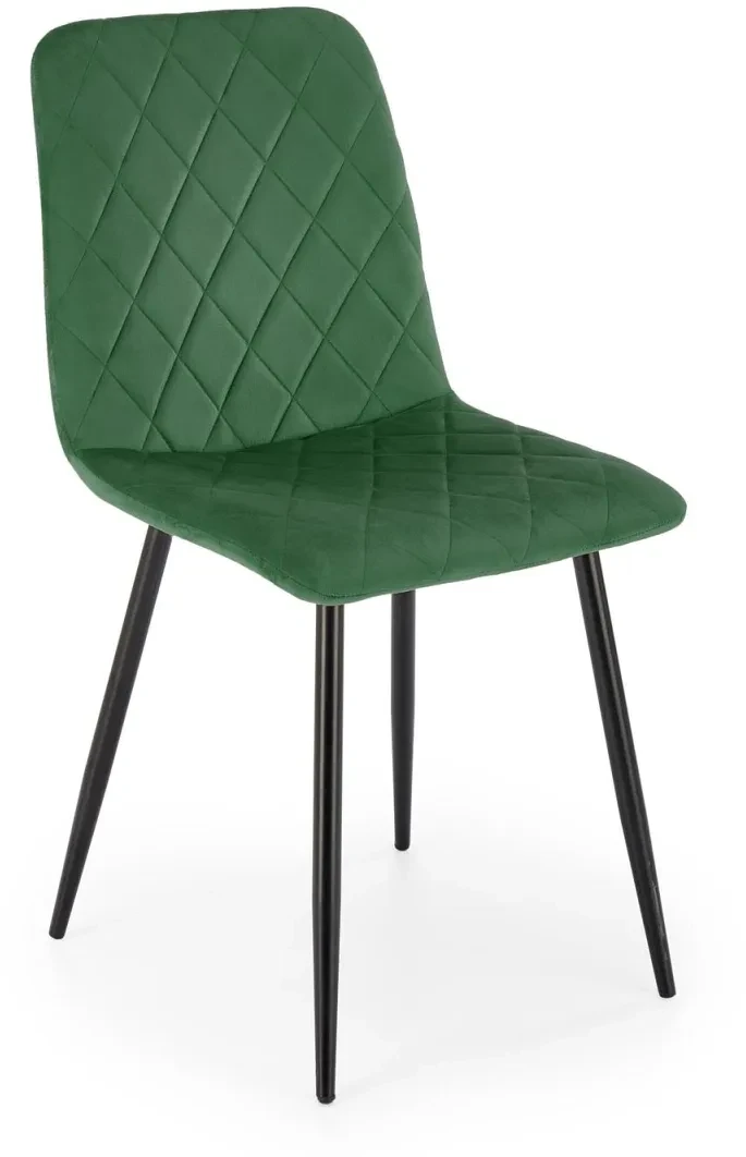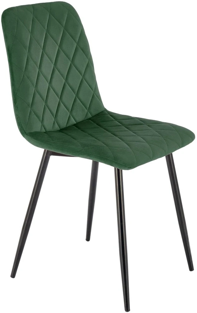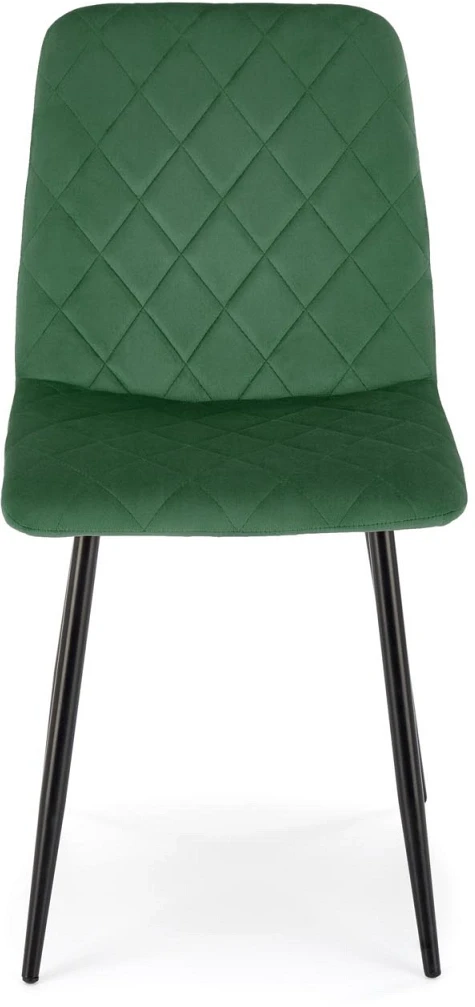 Krzesło tapicerowane K525 pikowane welurowe na czarnych nogach do jadalni ciemny zielony