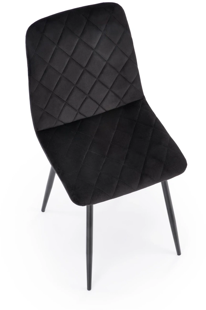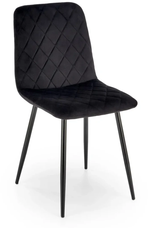 Krzesło tapicerowane K525 pikowane welurowe na czarnych nogach do jadalni czarny