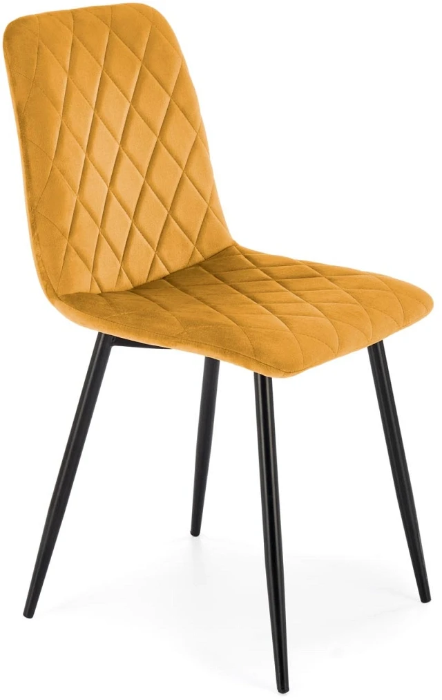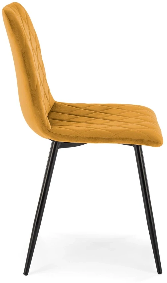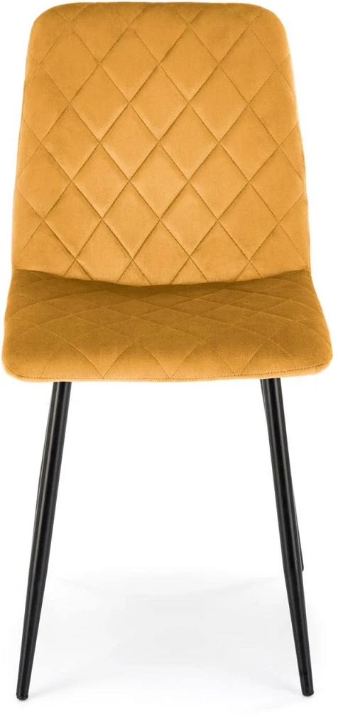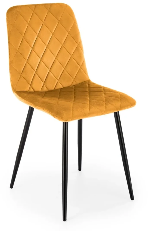 Krzesło tapicerowane K525 pikowane welurowe na czarnych nogach do jadalni musztardowy