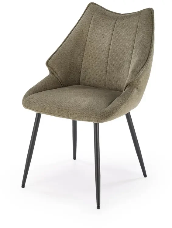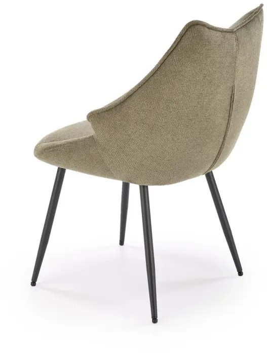 Krzesło K543 to eleganckie połączenie nowoczesnej formy i funkcjonalności. Tapicerowane przyjemną w dotyku tkaniną VARDO w odcieniu oliwkowym, przyciąga uwagę subtelną kolorystyką i prostą, harmonijną linią. Stabilna, czarna podstawa ze stali malowanej proszkowo nadaje konstrukcji lekkości i trwałości, sprawiając, że mebel doskonale prezentuje się zarówno w jadalni, jak i salonie.