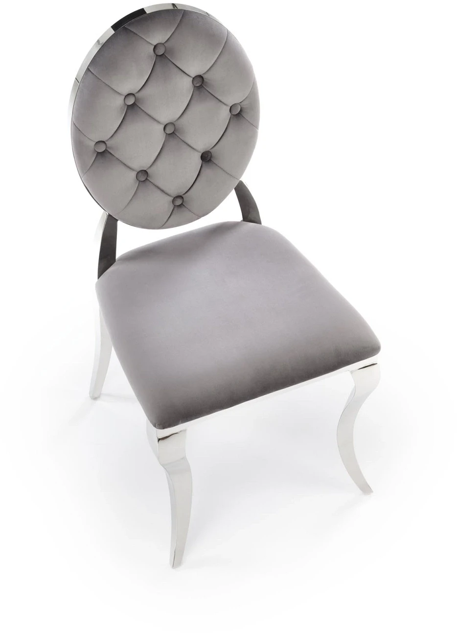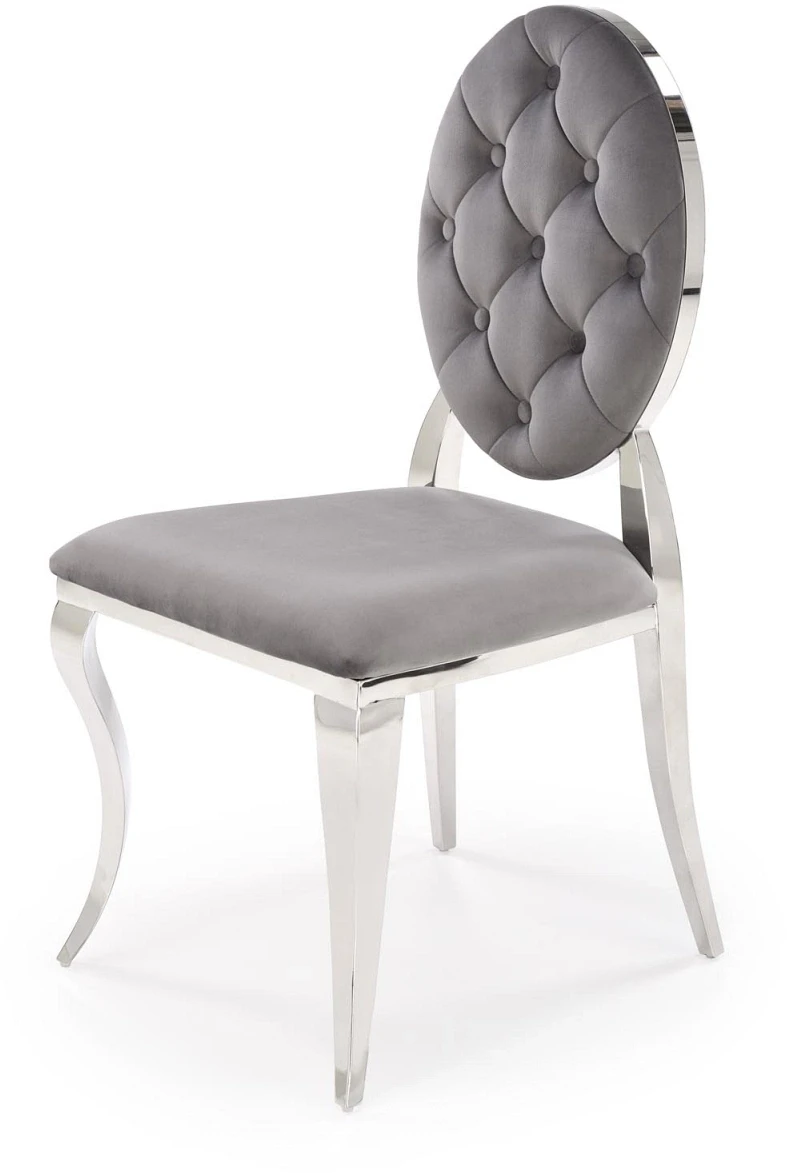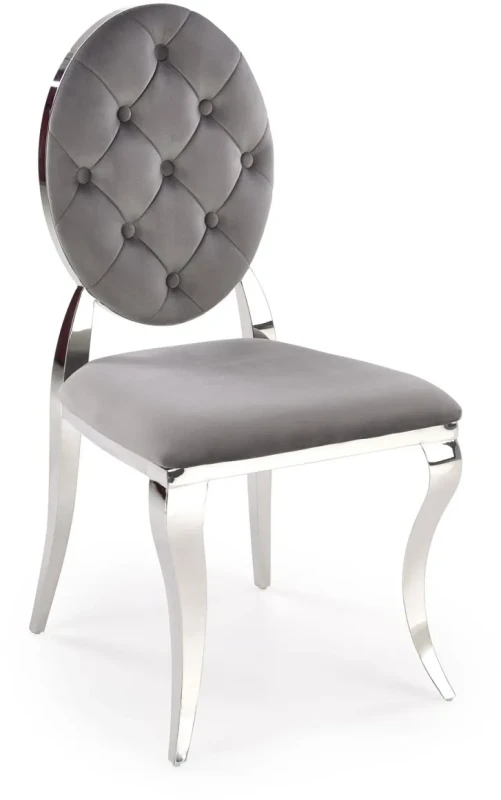 Krzesło tapicerowane K555 glamour welurowe do jadalni popielaty/srebrny