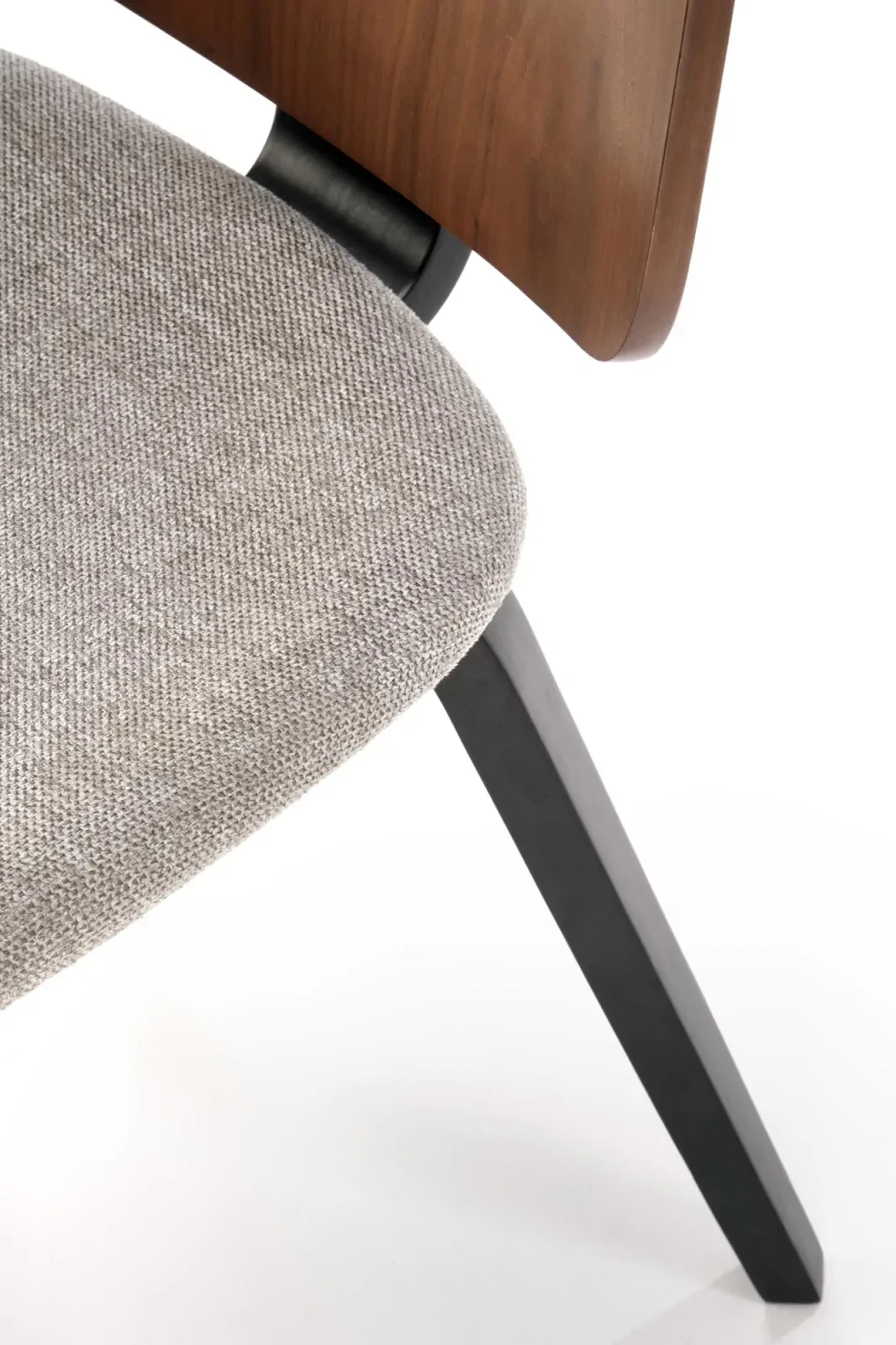 Krzesło tapicerowane K563 z drewnianym oparciem do jadalni orzechowy/popielaty