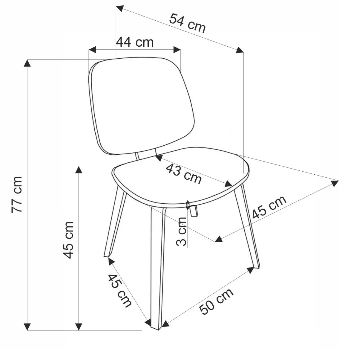 - Materiał: drewno lite – kauczukowe (oparcie) / sklejka gięta (stelaż) / tkanina (siedzisko)