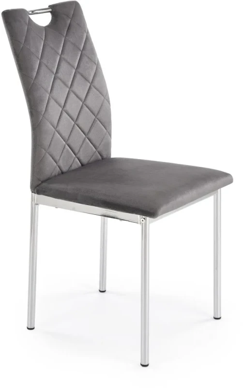 Krzesło K578 to propozycja dla osób ceniących sobie wyważone połączenie eleganckiego designu, trwałości oraz komfortu użytkowania. Stylowy, pikowany tył o wzorze karo, pokryty przyjemną w dotyku tkaniną velvet, nadaje meblowi nowoczesnego charakteru, który sprawdzi się zarówno w jadalni, jak i w salonie czy biurze. Dzięki uniwersalnemu popielatemu kolorowi i chromowanej, połyskującej podstawie, krzesło łatwo dopasowuje się do różnych aranżacji wnętrz – od minimalistycznych, przez glamour, aż po industrialne. Jego największymi atutami są estetyka, komfort oraz solidna konstrukcja, dzięki czemu mebel będzie służył przez długie lata. K578 to idealne rozwiązanie dla tych, którzy chcą wprowadzić do swojego wnętrza odrobinę luksusu, nie rezygnując przy tym z codziennej wygody.
