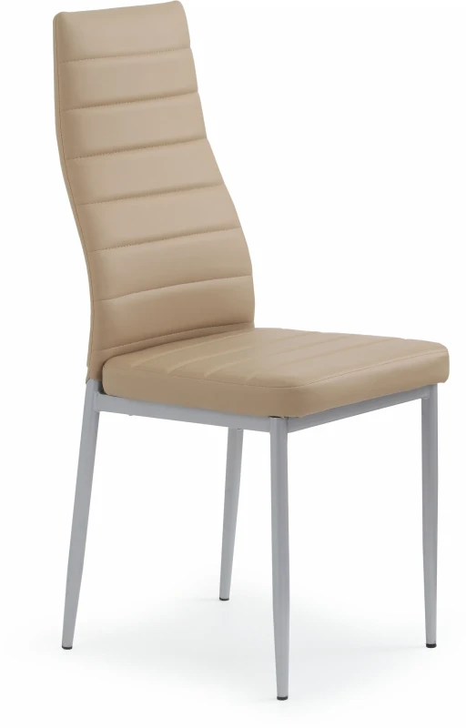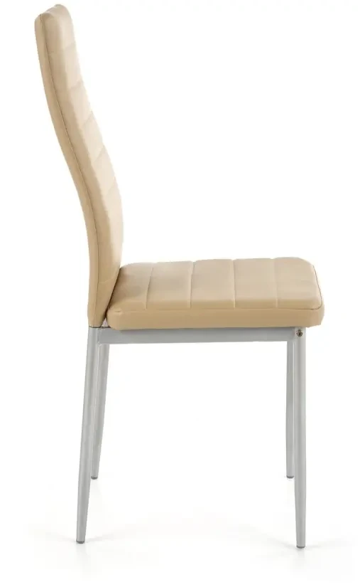 Krzesło K70 to eleganckie połączenie klasycznego designu z nowoczesnym wykończeniem. Smukła, metalowa konstrukcja malowana proszkowo w kolorze popielatym oraz siedzisko z eco skóry w odcieniu jasnego brązu tworzą harmonijną i stylową całość. To model, który doskonale odnajdzie się zarówno w jadalni, jak i w nowoczesnej kuchni czy sali konferencyjnej.