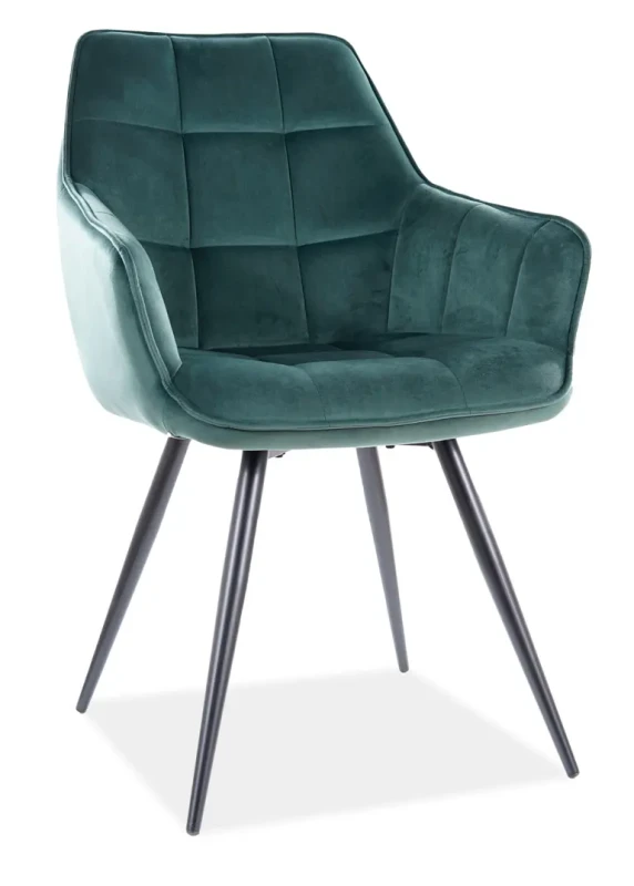 Krzesło Lilia Velvet to oryginalna propozycja tapicerowanego krzesła, które zapewni nam wyjątkowy komfort siedzenia. Mebel wykonany został wyłącznie z materiałów wysokiej jakości. Siedzisko tapicerowane jest wytrzymałą i niezwykle miękką w dotyku tkaniną aksamitną Bluvel 78 w intensywnym zielonym kolorze. Przód siedziska posiada wyjątkowe, ozdobne pikowania. Całość konstrukcji spoczywa na solidnych, metalowych nogach wybarwionych w czarnym, matowym kolorze. Krzesło Lilia Velvet pięknie ozdobi wnętrze jadalni, czy też restauracji. Jest to niezwykle oryginalny mebel, który z racji swojego klasycznego wyglądu będzie pasować do większości wnętrz. Każdy element krzesła Lilia Velvet został doskonale dopracowany.