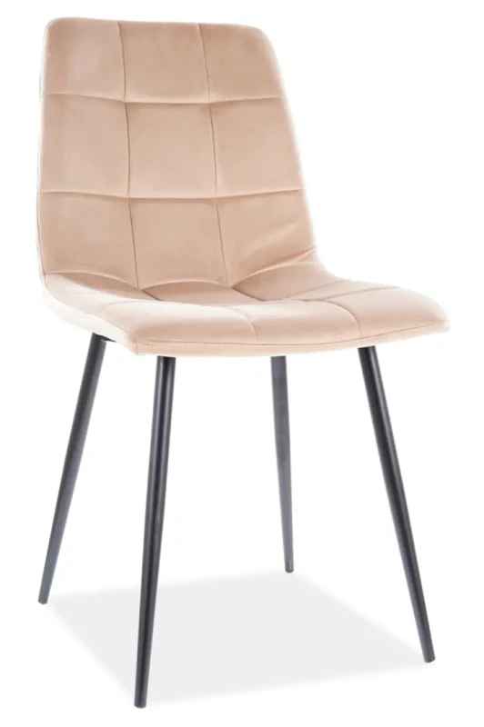 Krzesło Mila Velvet to oryginalna i stylowa propozycja tapicerowanego krzesła, które zapewni nam wyjątkowy komfort siedzenia. Mebel wykonany został wyłącznie z materiałów wysokiej jakości. Siedzisko tapicerowane jest wytrzymałą i niezwykle miękką w dotyku tkaniną aksamitną Bluvel 28 w naturalnym beżowym kolorze. Krzesło posiada ozdobne pikowania, które dodają mu elegancji i stylu. Całość spoczywa na solidnych, metalowych nóżkach wybarwionych w eleganckim kolorze czarnego matu. Krzesło Mila Velvet pięknie ozdobi wnętrze jadalni, czy też kuchni. Jest to niezwykle oryginalny mebel, który z racji swojego klasycznego wyglądu będzie pasować do większości wnętrz. Każdy element krzesła Mila Velvet został doskonale dopracowany.
