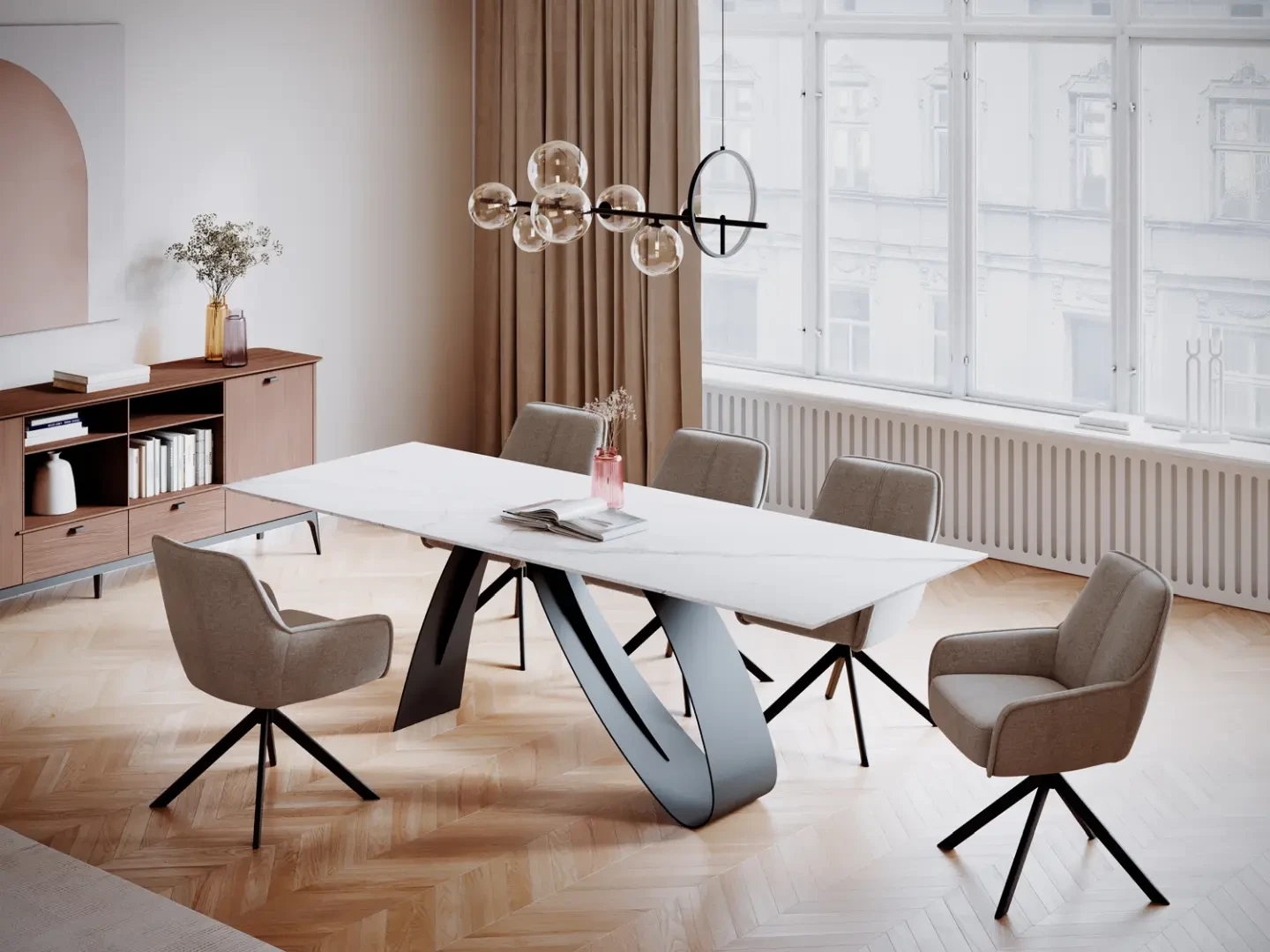 Krzesło Notti Brego to elegancki i funkcjonalny mebel, który doskonale sprawdzi się w nowoczesnych przestrzeniach. Jest obite tkaniną Brego w kolorze ciemnoszarym (numer 18), co nadaje mu wyjątkowego charakteru. Stelaż wykonany jest z metalu i pokryty czarną matową farbą, co zapewnia solidność i trwałość konstrukcji. Unikalną cechą krzesła jest obracane siedzisko, które może obracać się w zakresie 180 stopni oraz posiada funkcję automatycznego powrotu do pierwotnej pozycji. Komfort użytkowania zapewniają zastosowane w siedzisku sprężyny kieszeniowe, które dostosowują się do kształtu ciała, zapewniając wygodę i wsparcie.
