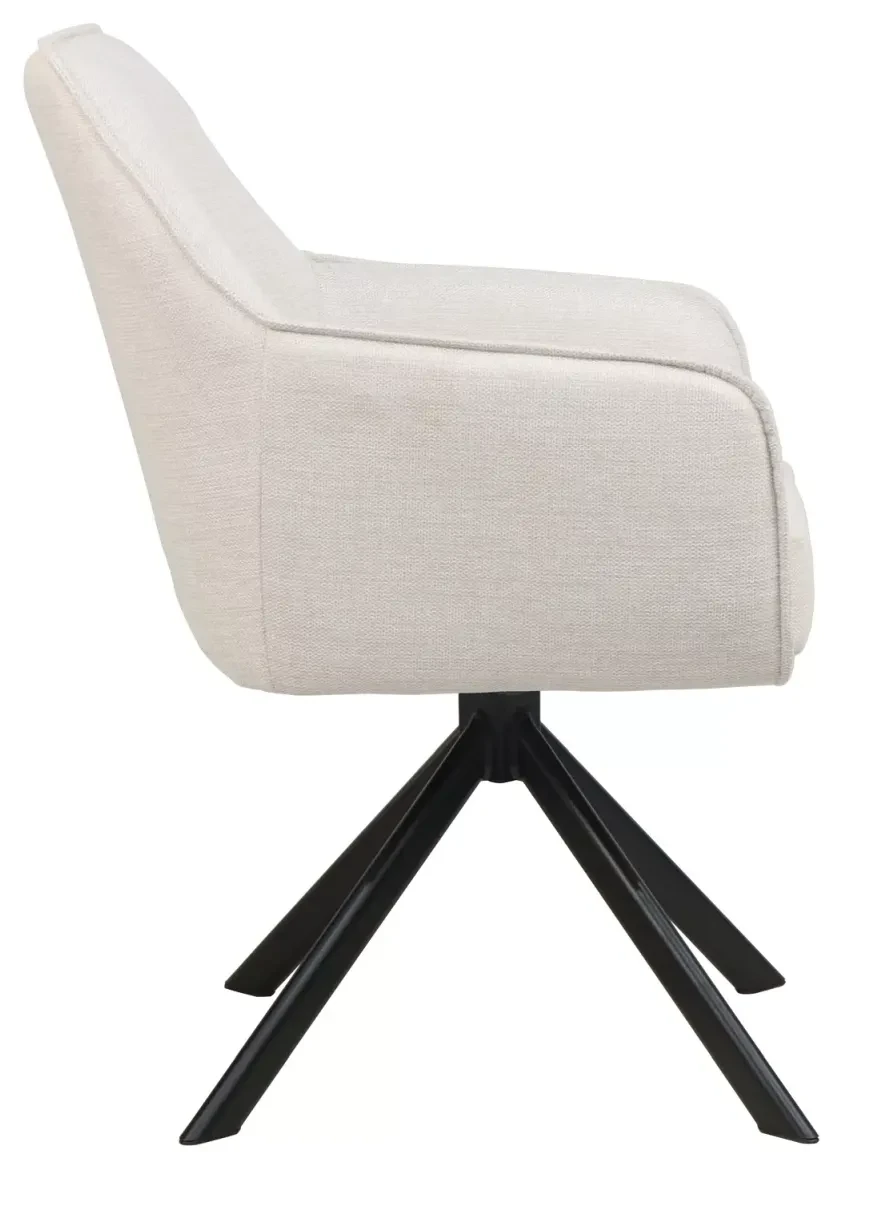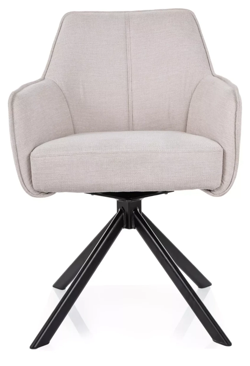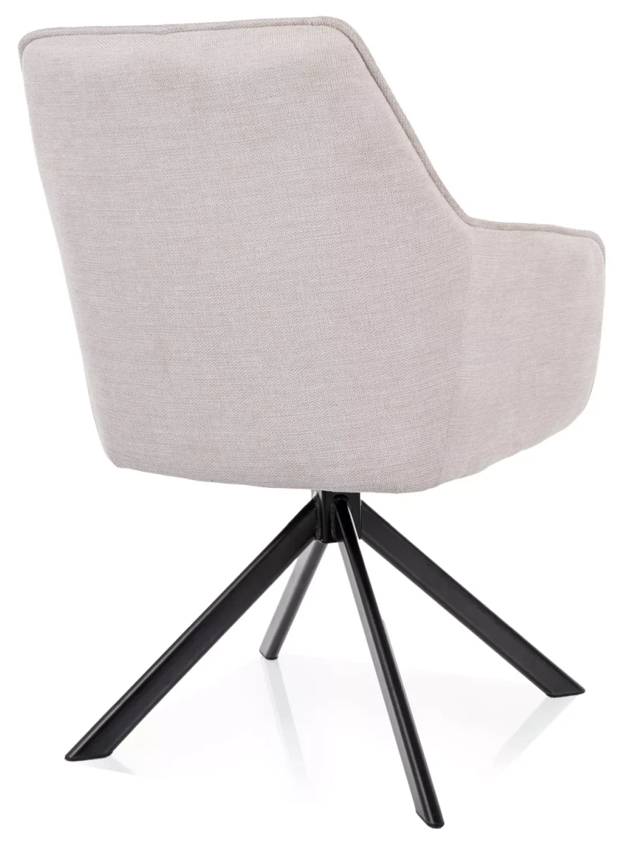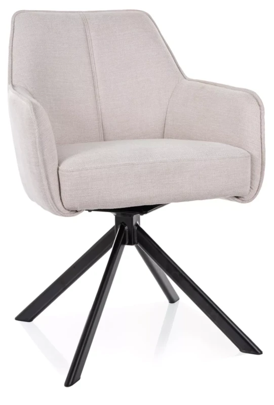 Krzesło NOTTI to doskonały wybór dla osób poszukujących harmonii między nowoczesnym designem a komfortem użytkowania. Obite tkaniną Brego w eleganckim, jasnobeżowym odcieniu, przyciąga wzrok swoją subtelną stylistyką i starannością wykonania. Model ten został zaprojektowany z myślą o maksymalnej wygodzie – tapicerowane siedzisko wyposażono w sprężyny kieszeniowe, które zapewniają wyjątkową elastyczność i trwałość, porównywalną do tej znanej z wysokiej jakości materacy. Obrotowy mechanizm 180° z funkcją automatycznego powrotu sprawia, że korzystanie z krzesła jest niezwykle intuicyjne i komfortowe, idealnie sprawdzając się zarówno w domowym gabinecie, jak i przy stole jadalnianym. Stabilny, czarny metalowy stelaż w matowym wykończeniu dodaje konstrukcji nowoczesnego charakteru i podkreśla jej solidność. Krzesło NOTTI to połączenie stylu, technologii i wygody, które odmieni każde wnętrze.