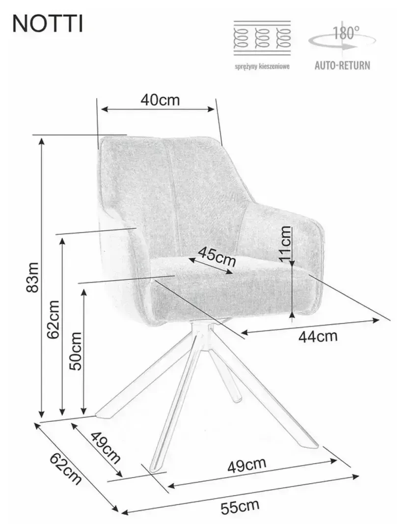 - Siedzisko wyposażone w sprężyny kieszeniowe