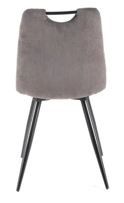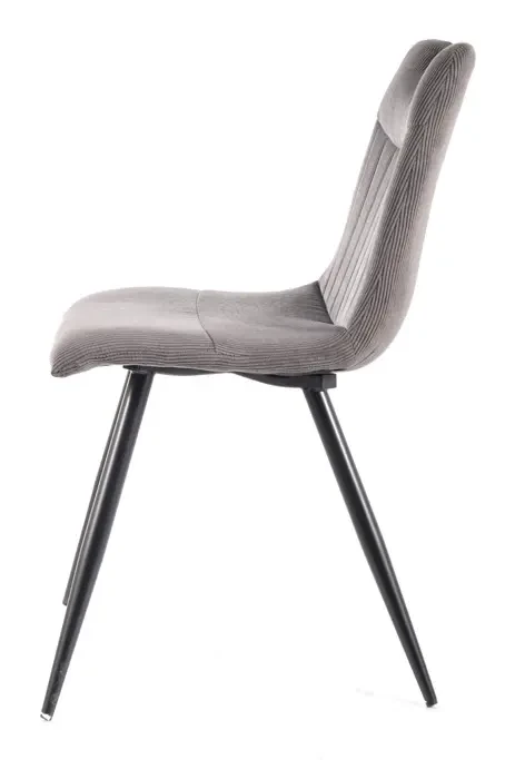 Krzesło Orfe Sztruks to oryginalna i stylowa propozycja tapicerowanego krzesła, które zapewni nam wyjątkowy komfort siedzenia. Mebel wykonany został wyłącznie z materiałów wysokiej jakości. Siedzisko tapicerowane jest wytrzymałą i charakterystyczną w swojej strukturze tkaniną sztruks Fjord 15 w modnym szarym kolorze. Krzesło posiada na oparciu ozdobne pionowe przeszycia, które dodają mu elegancji i stylu. Całość spoczywa na solidnych, metalowych nogach wybarwionych w czarnym matowym kolorze. Krzesło Orfe Sztruks pięknie ozdobi wnętrze jadalni, czy też kuchni. Jest to niezwykle oryginalny mebel, który z racji swojego klasycznego wyglądu będzie pasować do większości wnętrz. Każdy element krzesła Orfe Sztruks został doskonale dopracowany.