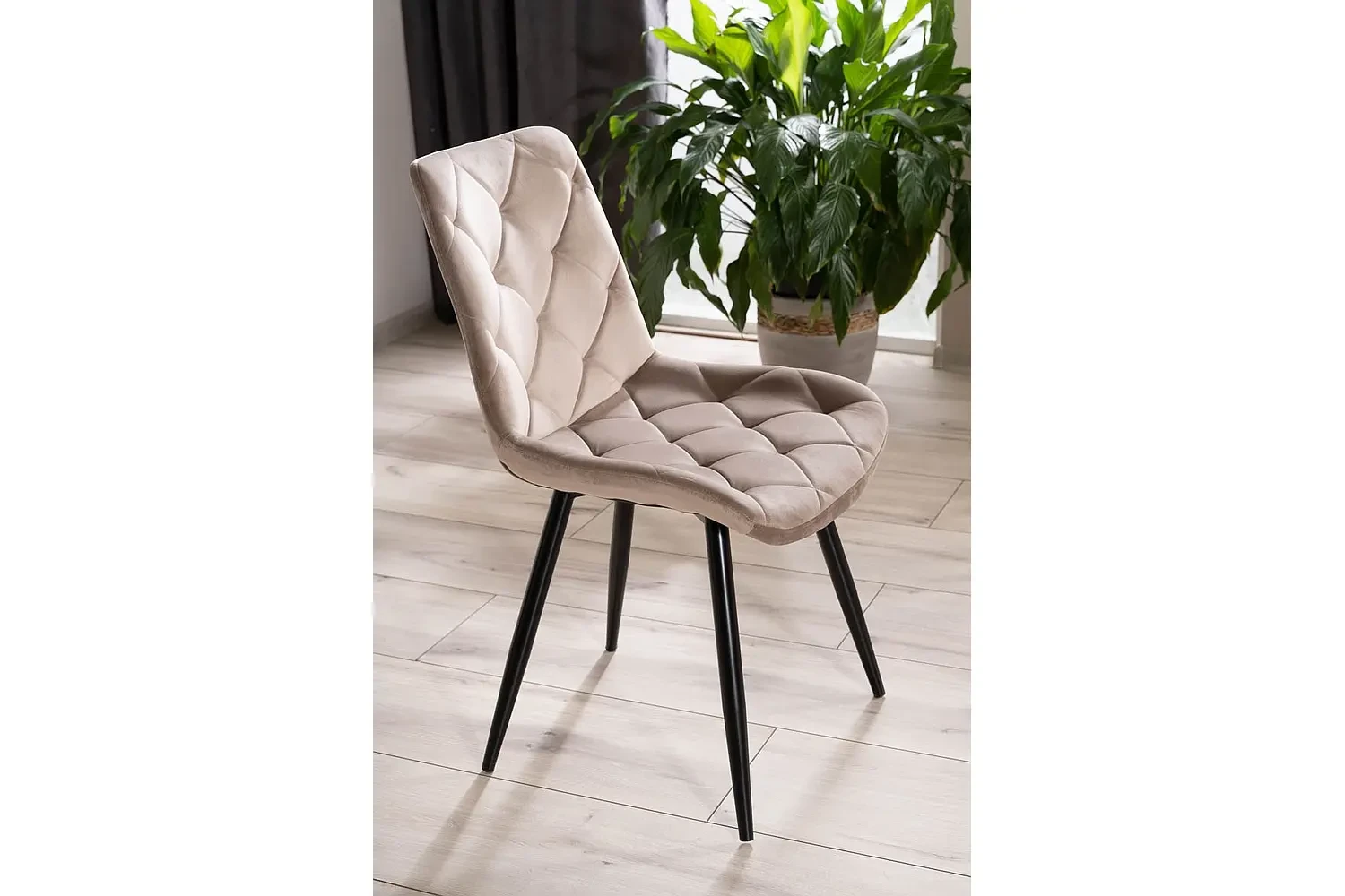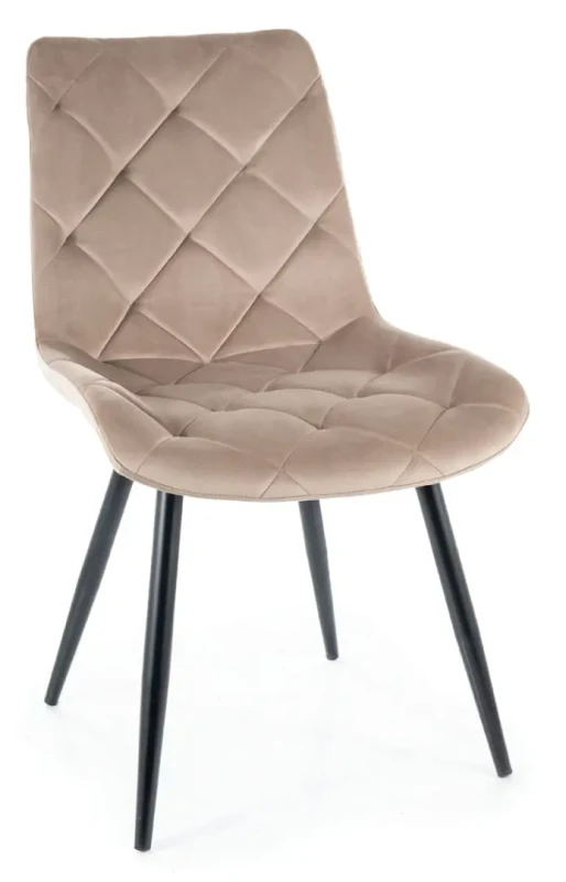 Krzesło Ralph Velvet to oryginalna i stylowa propozycja tapicerowanego krzesła, które zapewni nam wyjątkowy komfort siedzenia. Mebel wykonany został wyłącznie z materiałów wysokiej jakości. Siedzisko tapicerowane jest wytrzymałą i niezwykle miękką w dotyku tkaniną aksamitną Bluvel 40 w modnym ciemnobeżowym kolorze. Ozdobne pikowania nadają mu wyrafinowania i stylu. Solidne, metalowe nóżki w eleganckim matowym czarnym kolorze podtrzymują całość. Krzesło Ralph Velvet doskonale wkomponuje się w aranżację jadalni lub kuchni. Dzięki swojemu klasycznemu wyglądowi, pasuje do różnorodnych wnętrz. Każdy detal krzesła Ralph Velvet został perfekcyjnie dopracowany, co podkreśla jego niepowtarzalny charakter.