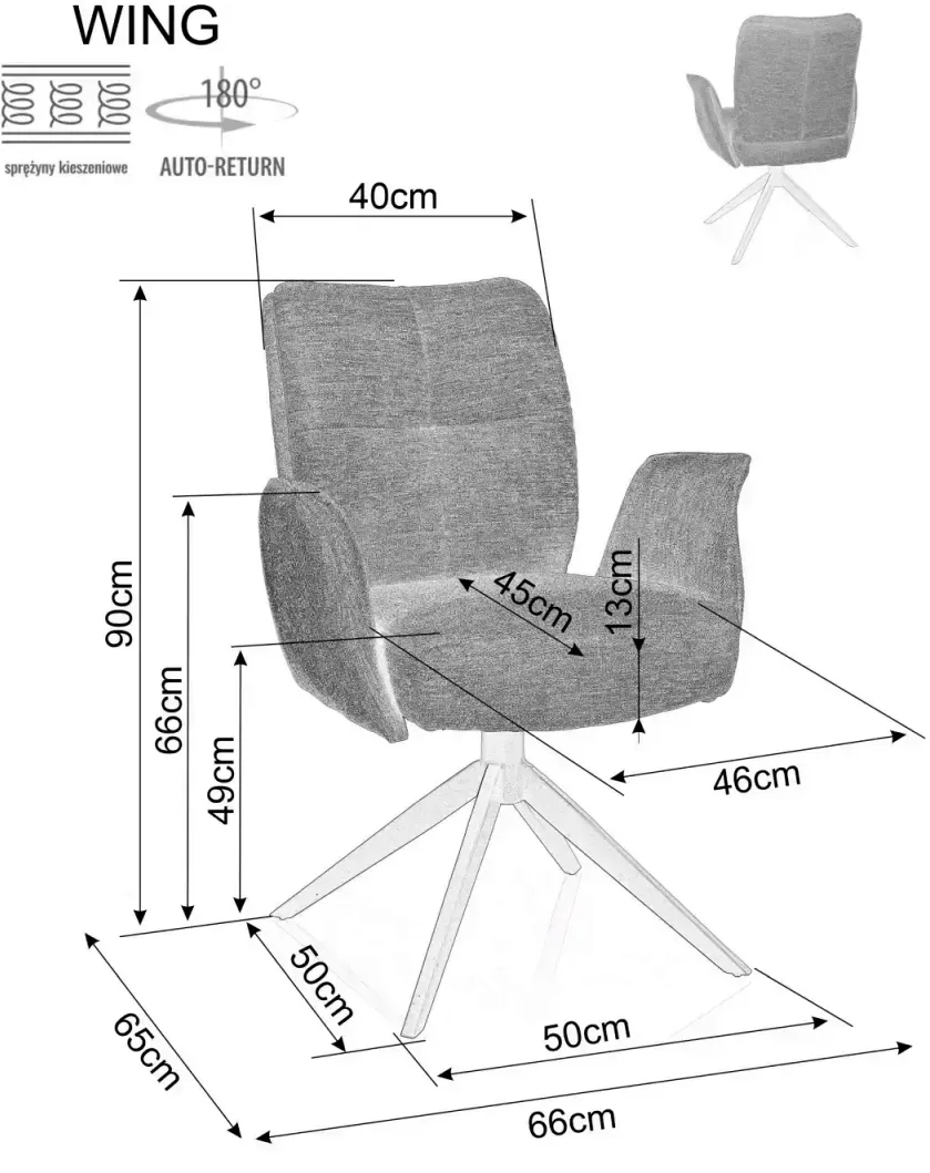 - Mechanizm auto-return – siedzisko obracane o 180°, wraca automatycznie do pozycji wyjściowej