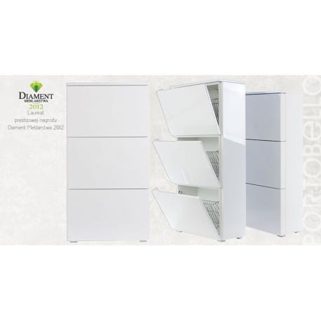 Puerto to praktyczna szafka na buty, dostępna w kolorze - lakierowany biały połysk. Nowoczesna szafka na buty Puerto, to funkcjonalny mebel, który sprawdzi się niemalże w każdym przedpokoju. Szafka na buty z półami, w których umieszczono dwurzędowe kosze, sprawi że z łatwością uporządkujesz miejsce przeznaczone do przechowywania obuwia. Zmieści się w niej do 18 par butów (w rozmiarze do 42). System bezuchwytowego otwierania, dodaje szafce nowoczesnego charakteru i zwiększa komfort użytkowania.