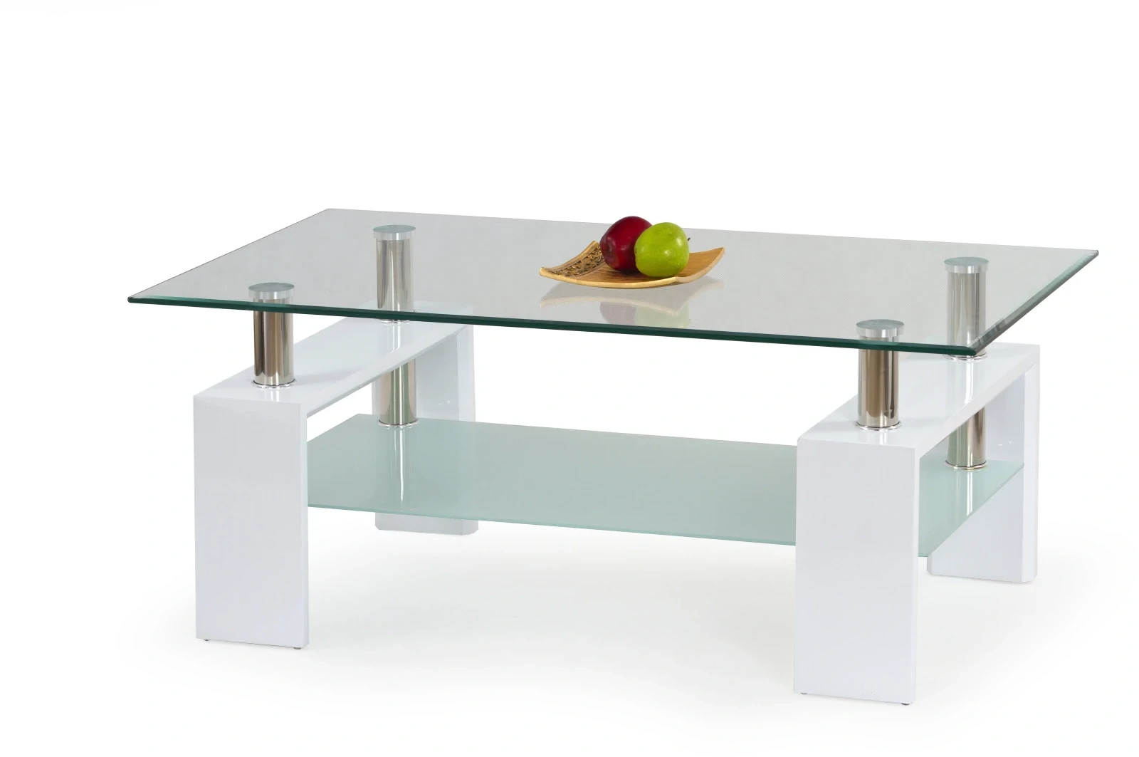 Ława dwupoziomowa Diana H do salonu blat szkło/biały