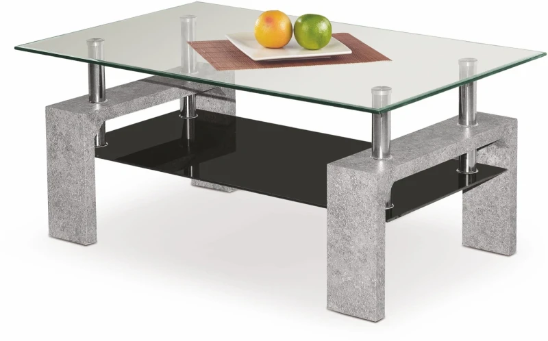 Ława dwupoziomowa Diana INTRO do salonu blat szkło/czarny/beton