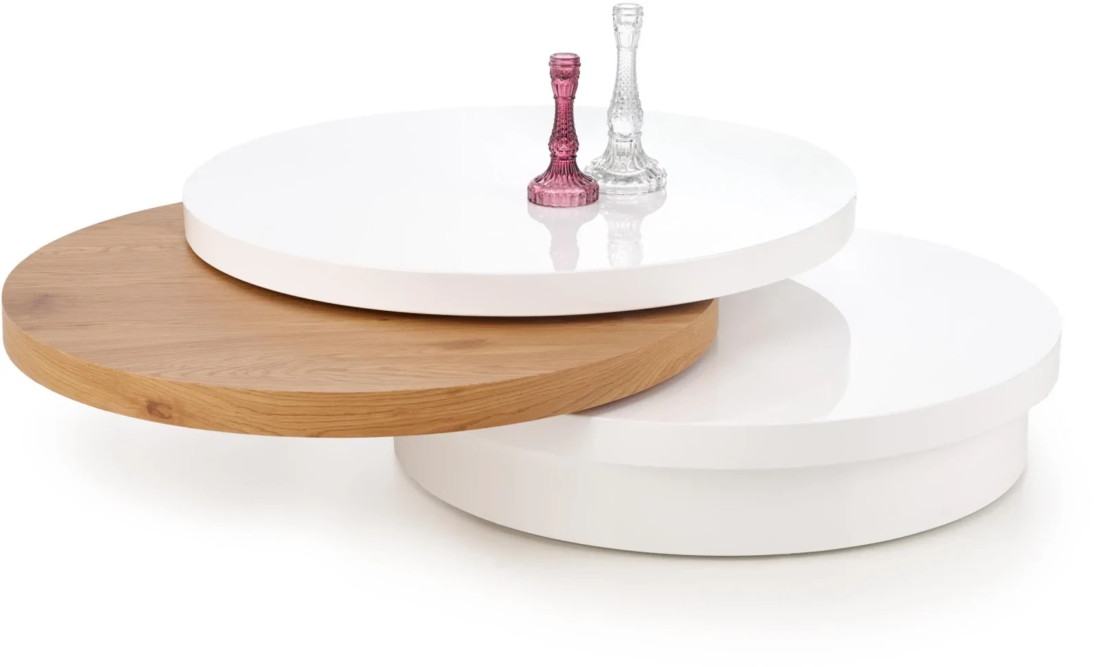 Ława Michelle to wyjątkowy mebel, który stanowi idealne uzupełnienie nowoczesnego wnętrza, łącząc w sobie nie tylko elegancki design, ale także praktyczne funkcje. Ta okrągła ława jest dowodem na to, że meble mogą być jednocześnie piękne i funkcjonalne, stając się centralnym punktem każdego salonu. Jej przemyślana konstrukcja oraz zastosowane materiały sprawiają, że jest to produkt, który spełni oczekiwania nawet najbardziej wymagających użytkowników. Ława Michelle to mebel, który zachwyca zarówno wyglądem, jak i funkcjonalnością. Jej nowoczesny, obrotowy blat ułatwia organizację przestrzeni, a eleganckie połączenie bieli i dębu złotego dodaje wnętrzu ciepła i klasy. Wysoka jakość materiałów i solidne wykonanie gwarantują długotrwałe użytkowanie bez utraty estetyki. To idealny wybór dla osób ceniących styl, funkcjonalność i trwałość w jednym. Michelle to nie tylko ława – to inwestycja w piękno i komfort Twojego domu.