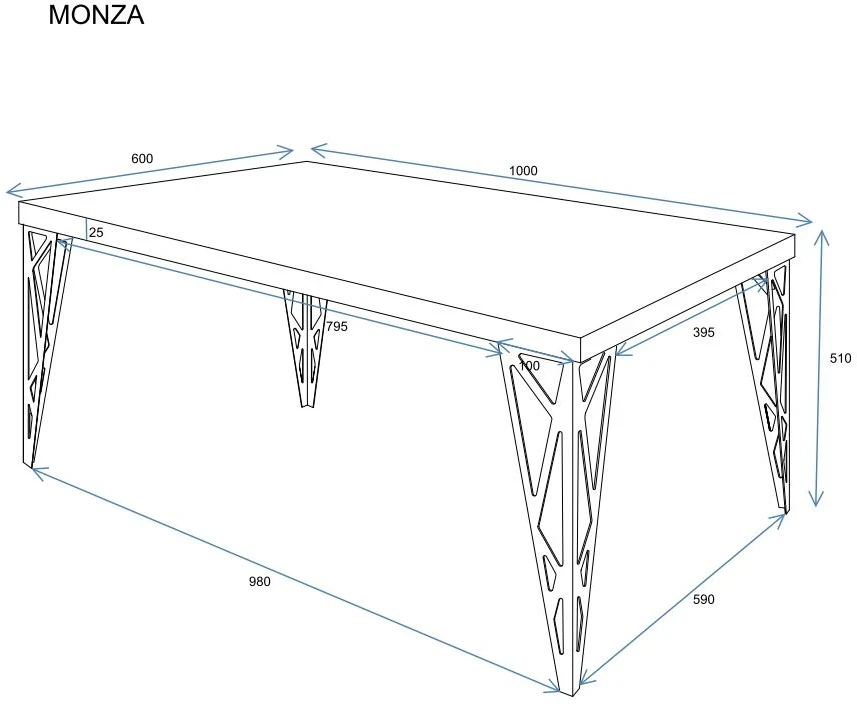 Ława Monza to praktyczna propozycja nowoczesnej prostej w designie ławy do pokoju dziennego. Dzięki lekkiej konstrukcji i optymalnym rozmiarom można ją łatwo przenieść. Blat ławy wykonany został z wysokiej jakości płyty w połysku, a ażurowe nóżki z metalu w kolorze czarnym. Ława Monza zaprojektowana i wykonana została w Polsce co jest gwarancją jakości - Wspieraj
