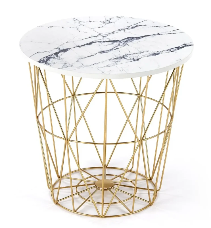 - Elegancki design: Biały marmurowy blat w połączeniu ze złotym stelażem tworzy wyrafinowany, a zarazem nowoczesny wygląd, który przyciąga wzrok i stanowi doskonały akcent w każdym wnętrzu.