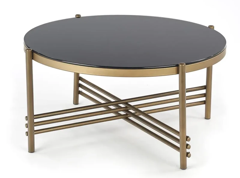 Ława okrągła Ismena 80 cm blat szkło czarny/złoty