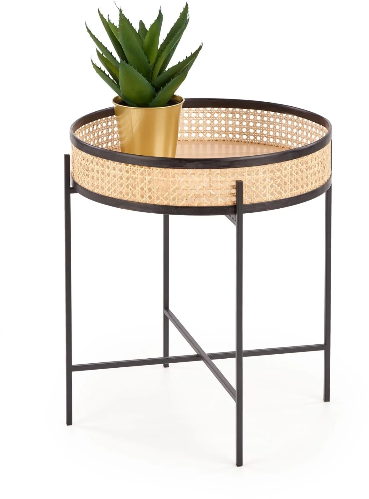 Ława okrągła Lanipa 50cm do salonu rattan naturalny/czarny