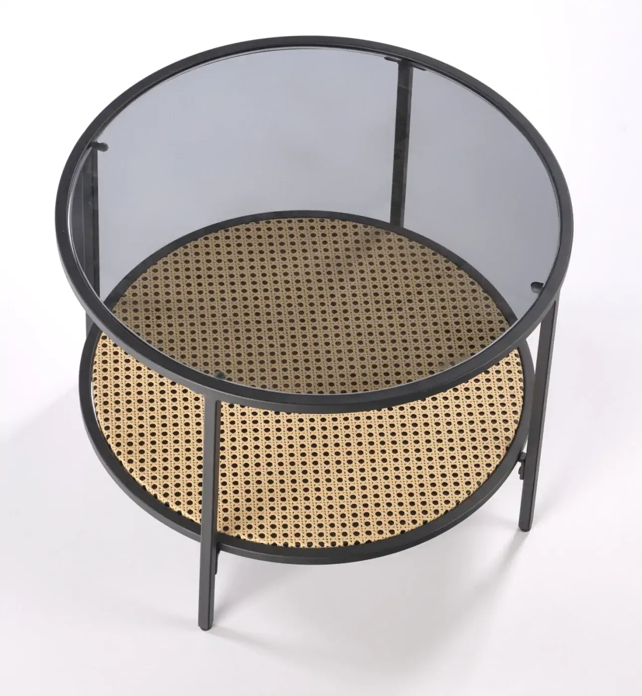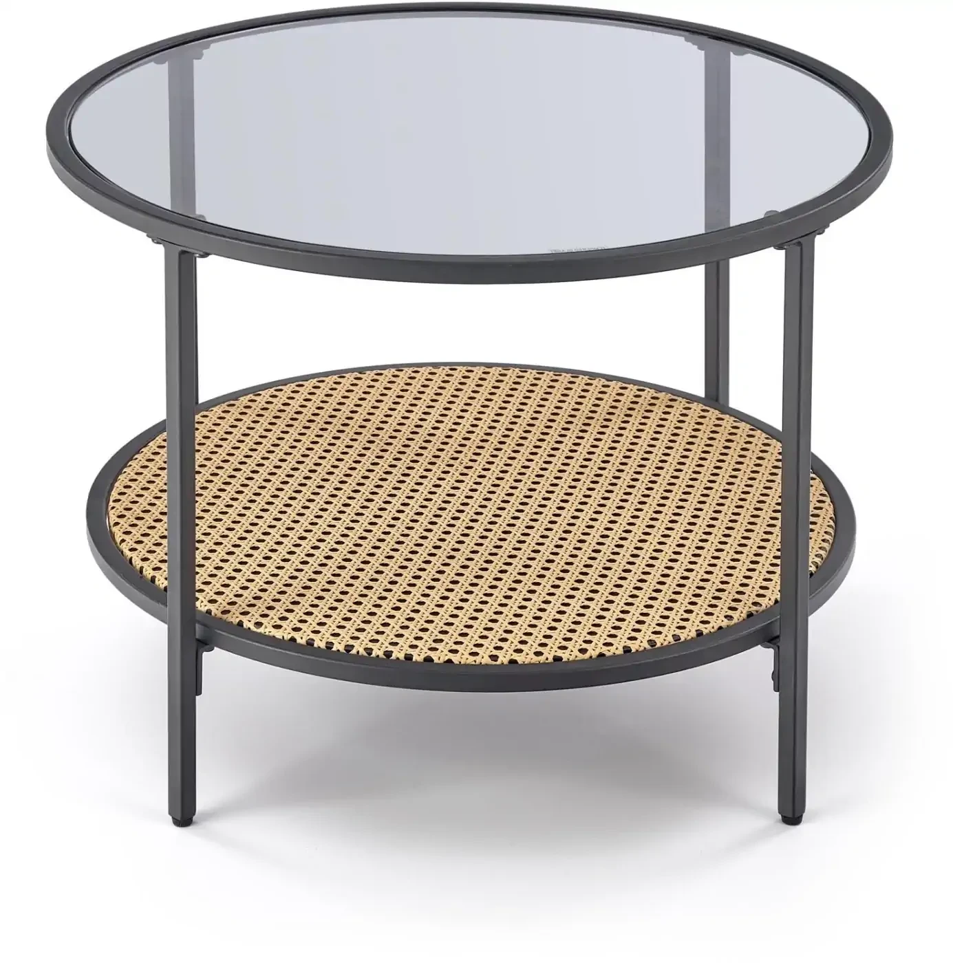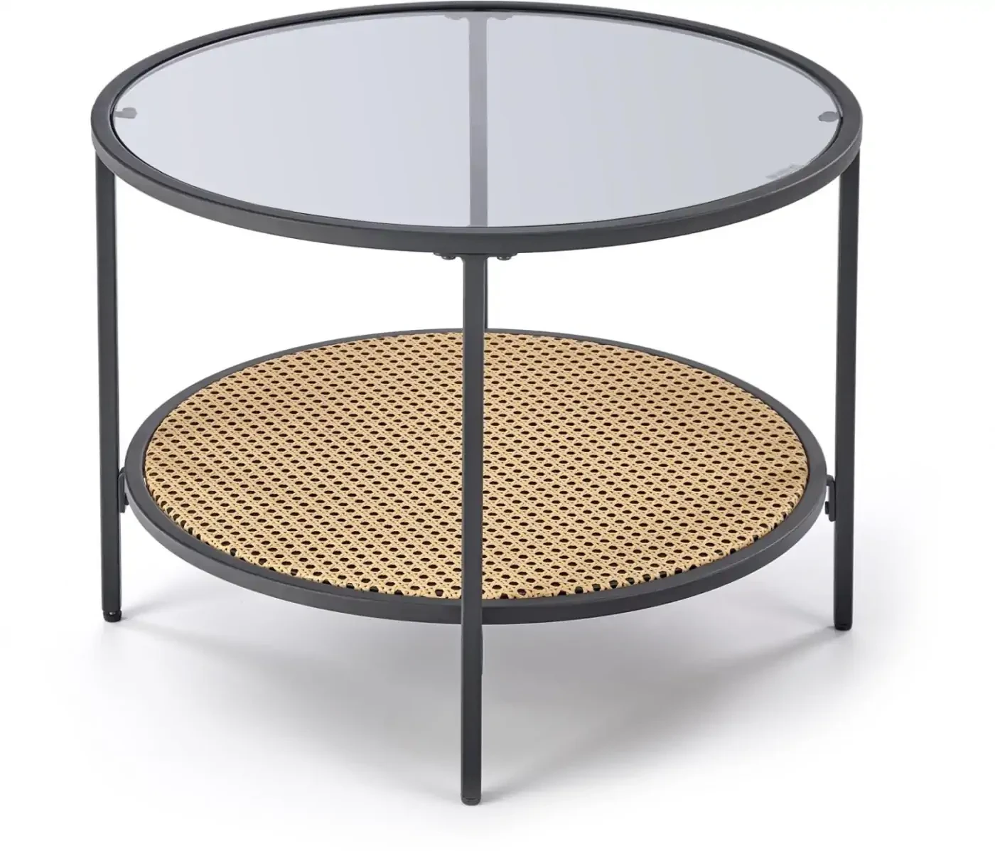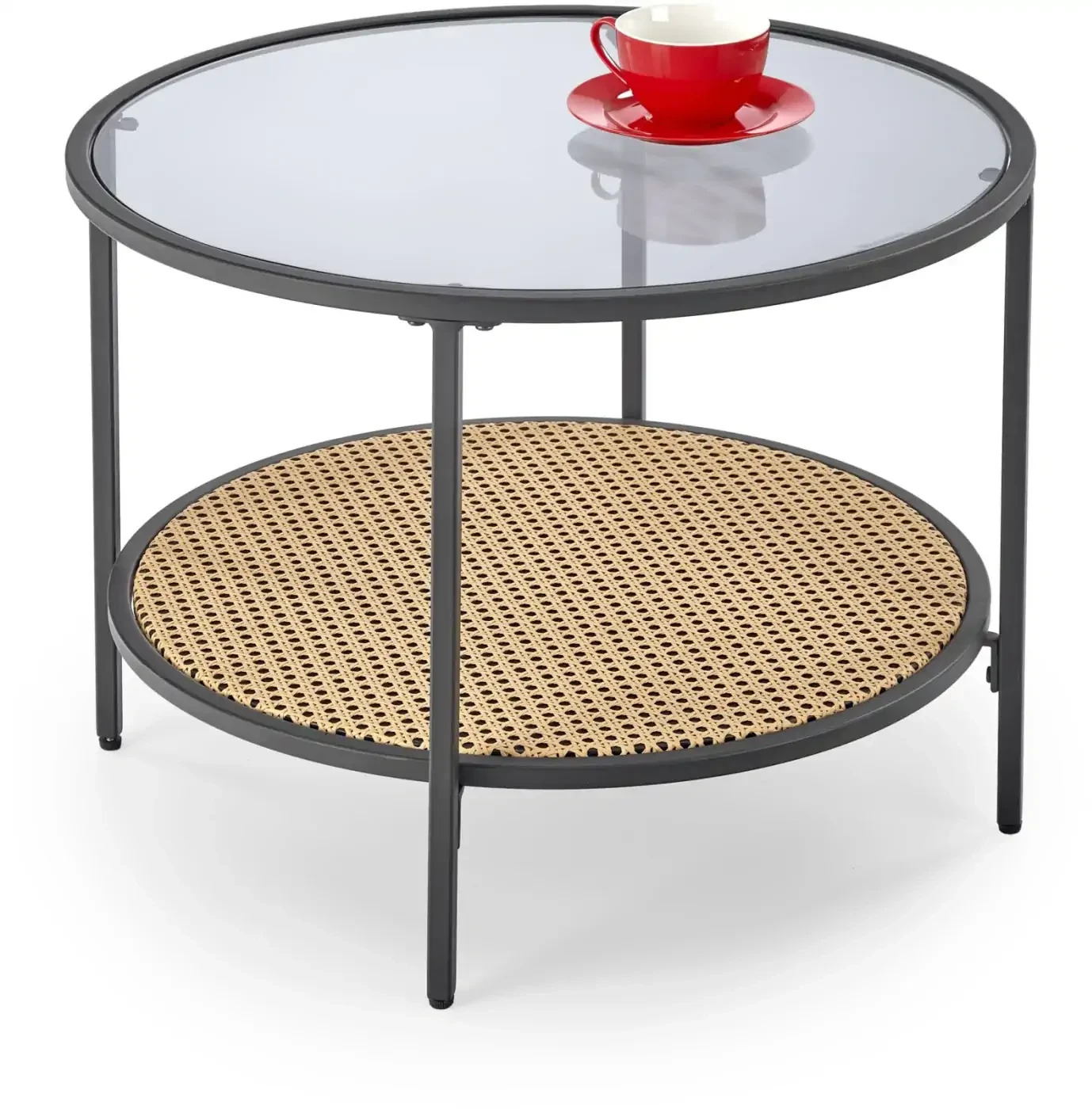 Ława DAKOTA to połączenie nowoczesnej formy i naturalnego uroku. Okrągły blat z transparentnego szkła w kolorze dymionym subtelnie eksponuje dekoracyjny rattanowy element, nadając meblowi lekkości i stylu boho. Stabilna podstawa wykonana ze stali malowanej proszkowo w czarnym kolorze gwarantuje trwałość oraz odporność na uszkodzenia.