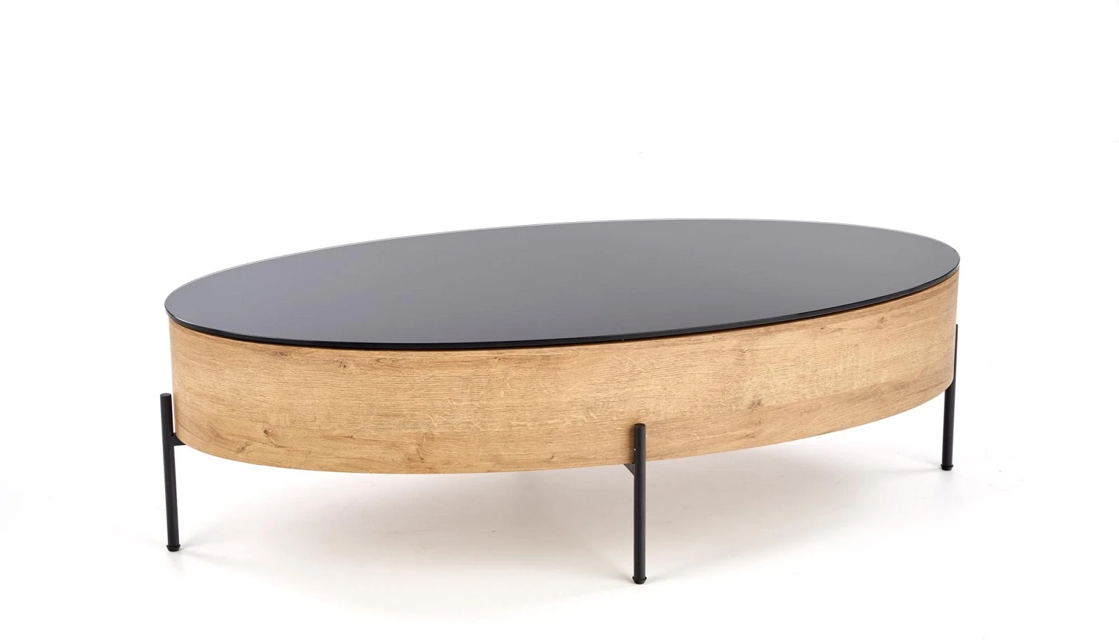 Ława ZENGA to elegancki mebel, który łączy nowoczesny design z funkcjonalnością. Wykonana z połączenia szkła, płyty MDF okleinowanej oraz stali malowanej proszkowo, zachwyca wykończeniem w połysku oraz kontrastowym zestawieniem kolorów: czarnego i dębu złotego. Dzięki przemyślanej konstrukcji i praktycznemu pojemnikowi, doskonale sprawdzi się w salonie, dodając mu szyku i porządku. Styl loftowy z nutą skandynawskiego ciepła sprawia, że ława ZENGA pasuje zarówno do nowoczesnych, jak i bardziej klasycznych aranżacji wnętrz.