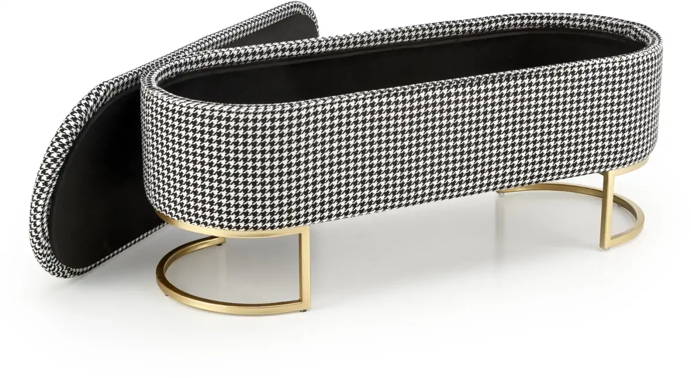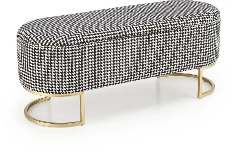 Ławka Harmony to elegancki i funkcjonalny mebel, który doskonale wpasuje się w nowoczesne wnętrza, łącząc estetykę z praktycznym wykorzystaniem przestrzeni. Dzięki przemyślanemu designowi oraz wysokiej jakości materiałom, jest to propozycja idealna dla osób ceniących sobie zarówno wygląd, jak i funkcjonalność. To nie tylko stylowy dodatek, ale również praktyczne rozwiązanie do przechowywania różnych przedmiotów. Funkcja pojemnika sprawia, że ławka Harmony oferuje dodatkowe miejsce na przechowywanie, co jest niezwykle przydatne w mniejszych pomieszczeniach. Tapicerka w charakterystyczny wzór pepitki oraz złote, malowane proszkowo nogi podkreślają luksusowy wygląd mebla, który z pewnością stanie się ozdobą każdego wnętrza.