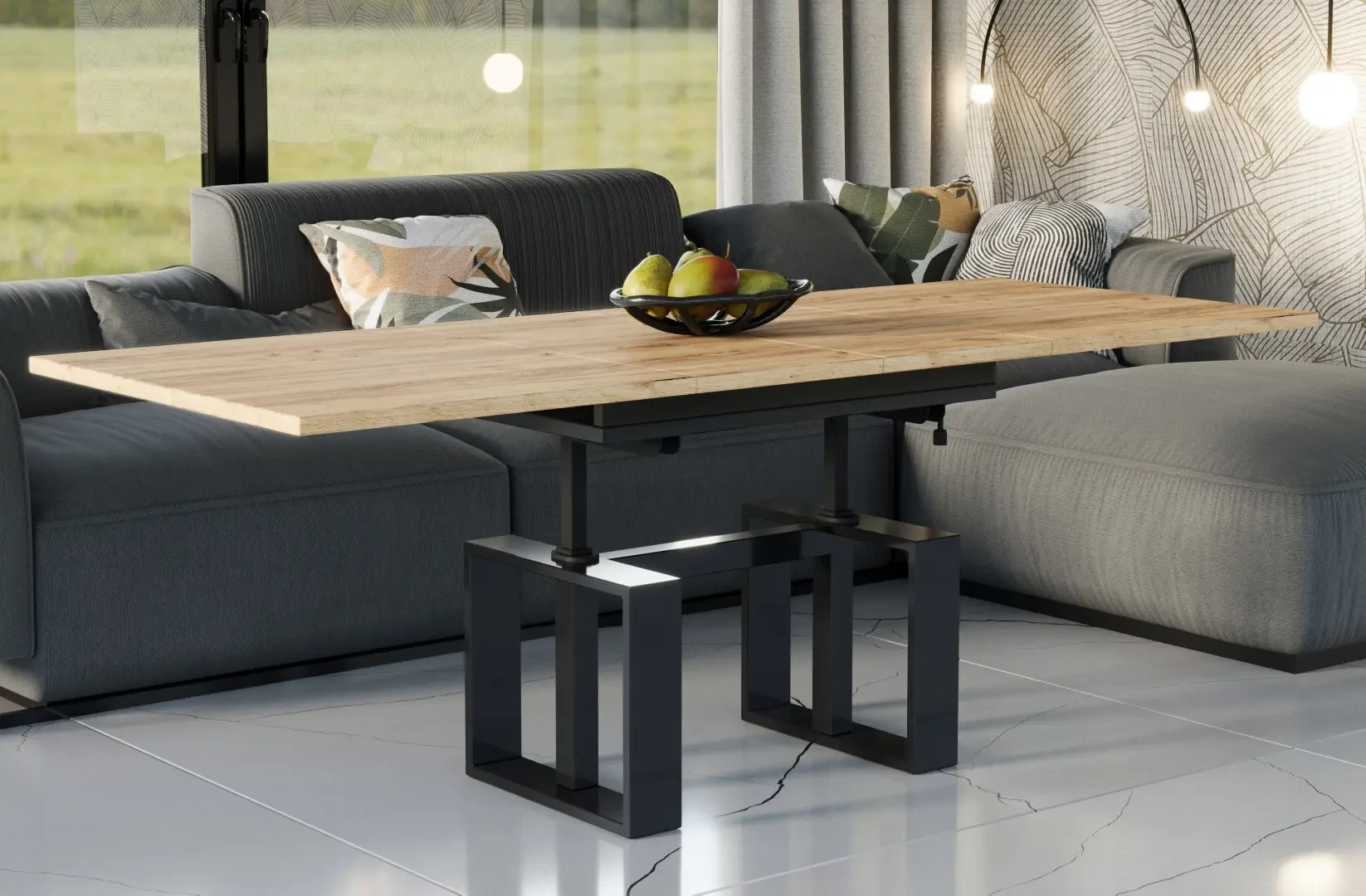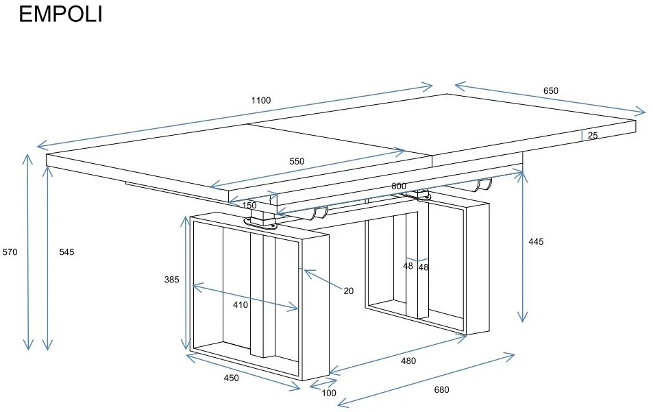 Ławostół Empoli to stylowa i oryginalna propozycja nowoczesnej, rozkładanej ławy do pokoju dziennego. Dzięki wkładkom chowanym pod blatem ławę można szybko złożyć i rozłożyć na wypadek niezaplanowanej wizyty gości. Za pomocą opcji podnoszenia twoją ławę można podnieść do wysokości 75 cm. Zastosowanie dwóch wkładek umożliwia wydłużenie ławy do 170 cm. Ława wykonana została z wysokiej jakości płyt o wyczuwalnej strukturze, w różnych kolorach idealnie odwzorowujących np. naturalne drewno. Ława rozkładana Empoli zaprojektowana i wykonana została w Polsce co jest gwarancją jakości - Wspieraj