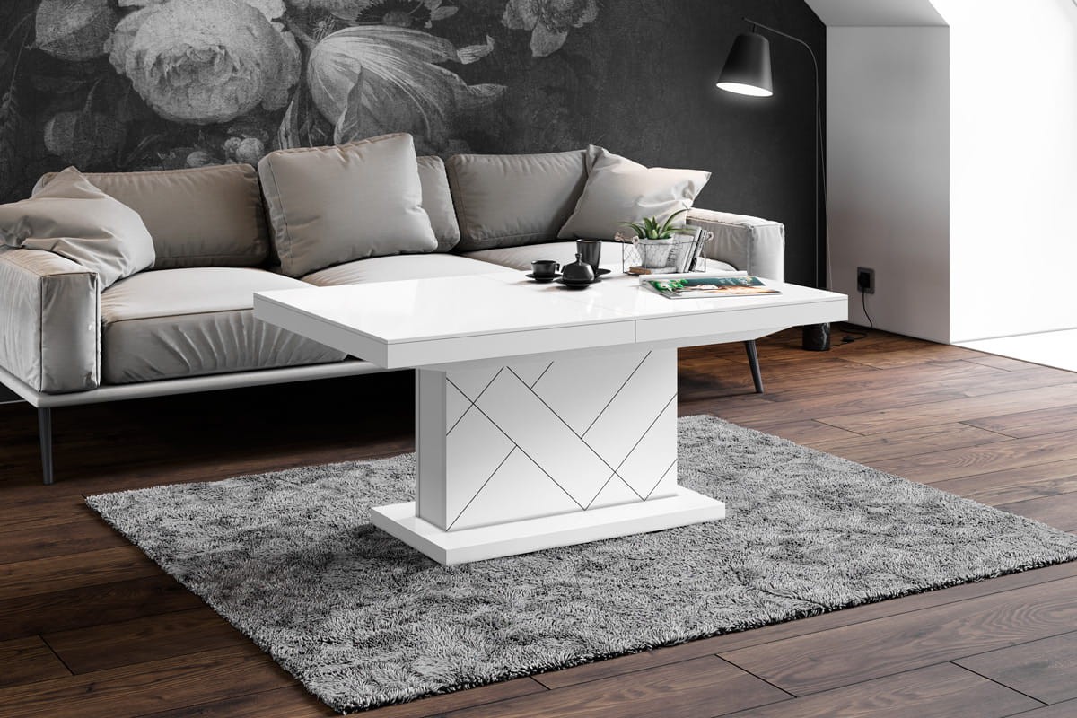 Ława MATERA MAX to oryginalny i niezwykle elegancki projekt praktycznej ławy kawowej umożliwiającej przekształcenie jej w prosty i szybki sposób w pełnowymiarowy stół do jadalni. Możliwości podnoszenia i rozkładania blatu oraz najwyższa jakość wykonania pozwalają zastosować ławostół nawet w najmniejszych przestrzeniach mieszkalnych.