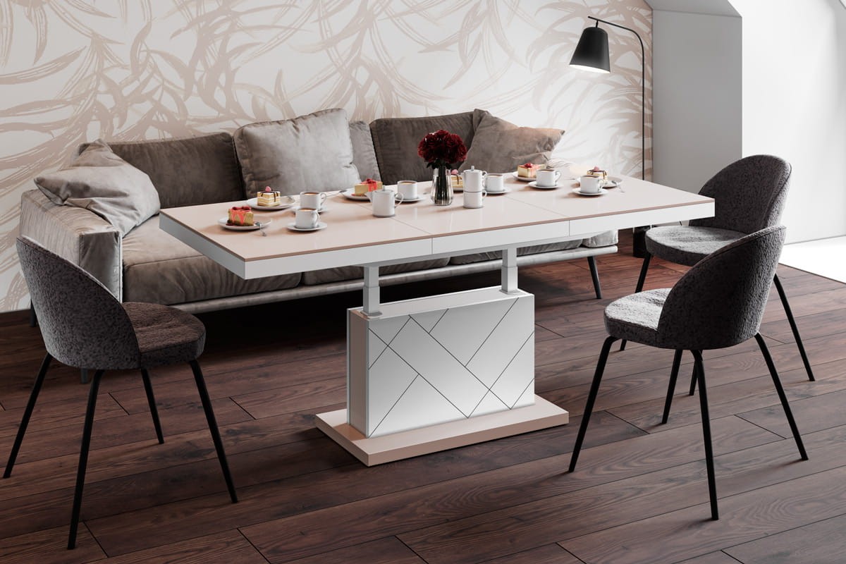 Ława MATERA MAX to oryginalny i niezwykle elegancki projekt praktycznej ławy kawowej umożliwiającej przekształcenie jej w prosty i szybki sposób w pełnowymiarowy stół do jadalni. Możliwości podnoszenia i rozkładania blatu oraz najwyższa jakość wykonania pozwalają zastosować ławostół nawet w najmniejszych przestrzeniach mieszkalnych.