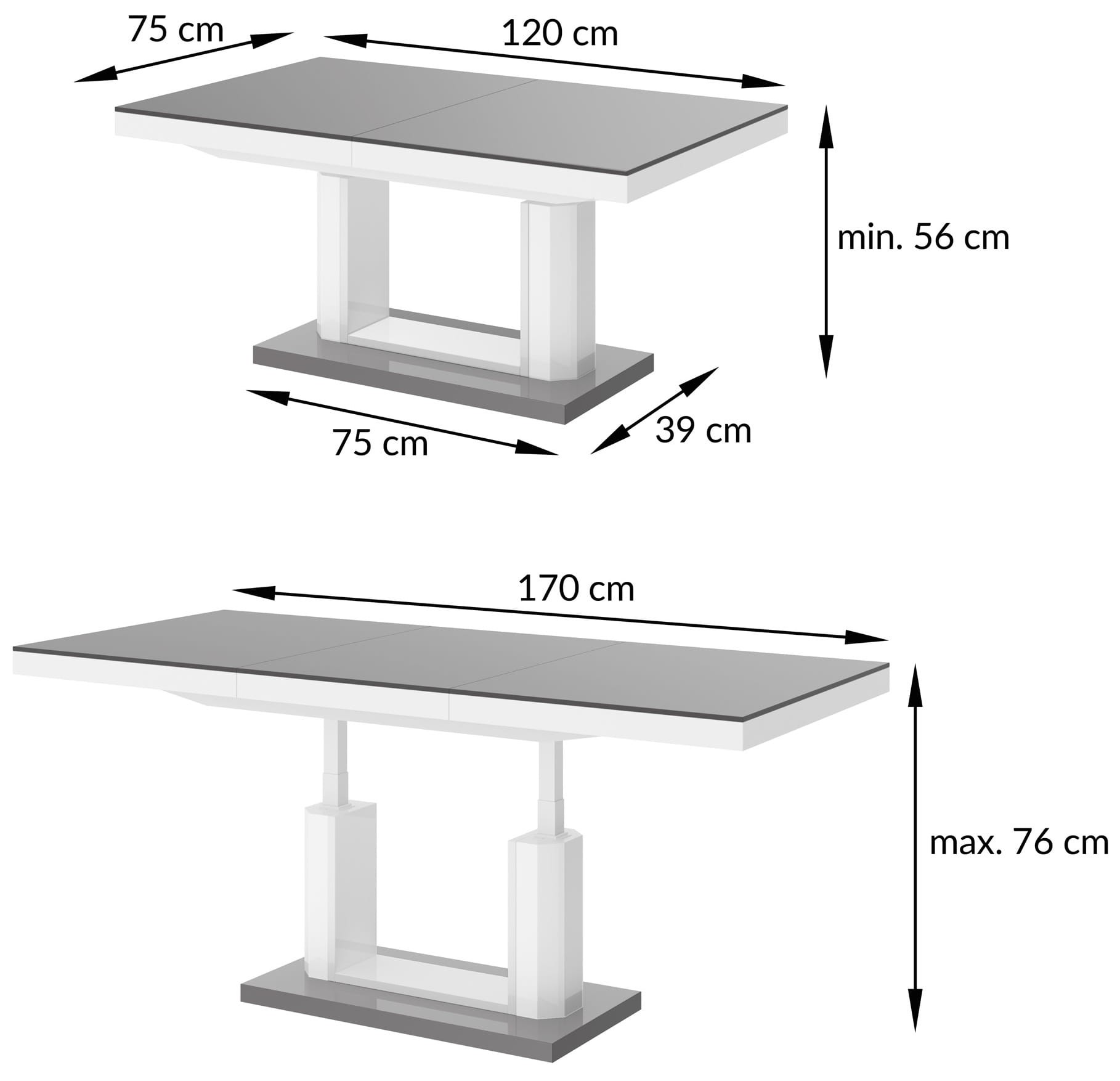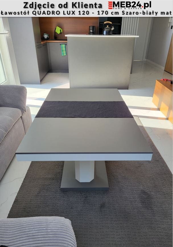 Ławostół podnoszony rozkładany QUADRO LUX 120 - 170 cm Szaro-biały mat