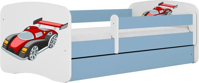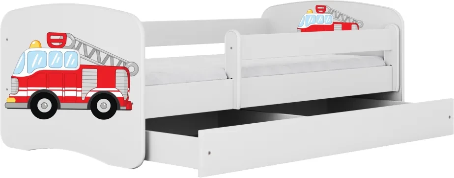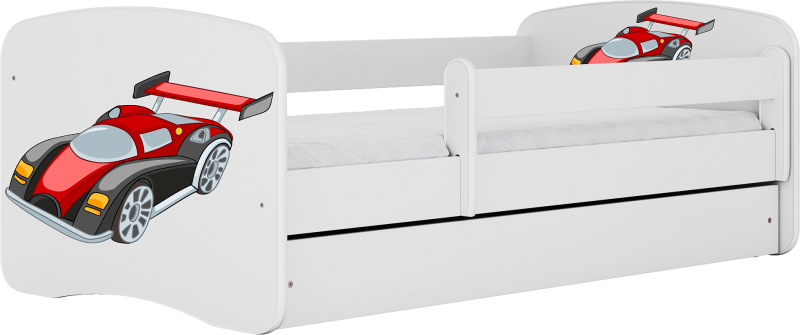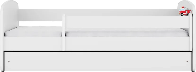Łóżeczko Babydreams to niezwykła propozycja komfortowego i bezpiecznego łóżka dziecięcego. Korpus łóżeczka wykonany został z wysokiej jakości płyty laminowanej w najgrubszym stosowanym rozmiarze czyli 18 mm, zaś stelaż wykonany jest z naturalnego drewna. Solidna budowa oraz zaokrąglone krawędzie gwarantują trwałość i bezpieczeństwo użytkowania. Fronty łóżka pokryto gumową okleiną mocowaną bez użycia kleju. Łóżeczko posiada ruchomą barierkę o długości 100 cm oraz ma możliwość dokupienia szuflady, która jest dwudzielna (przegroda w środku). Barierka, tak jak i szuflada, mogą zostać zamontowane po obu stronach mebla. Montaż łóżeczka odbywa się przy użyciu specjalnych śrub ściągających, dzięki którym wytrzymuje ono obciążenie do 100 kg. Łóżko Babydreams dostępne jest w kilku kolorach oraz z możliwością wyboru ozdobnej naklejki. Ten element ozdobny z pewnością spodoba się każdemu dziecku, gdyż zawiera postacie z bajek, księżniczki, auta oraz zwierzątka. Poniżej znajduje się paleta naklejek dedykowanych dla chłopców. Łóżko posiada certyfikację dlatego jest bezpieczne nawet dla mniejszych dzieci (m.in. nie posiada małych elementów np. jak zaślepki śrub, które dziecko mogłoby zdjąć i połknąć).