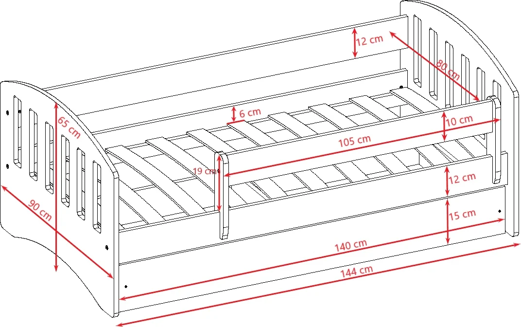 - Przesuwana barierka - zabezpiecza dziecko przed upadkiem w podczas snu