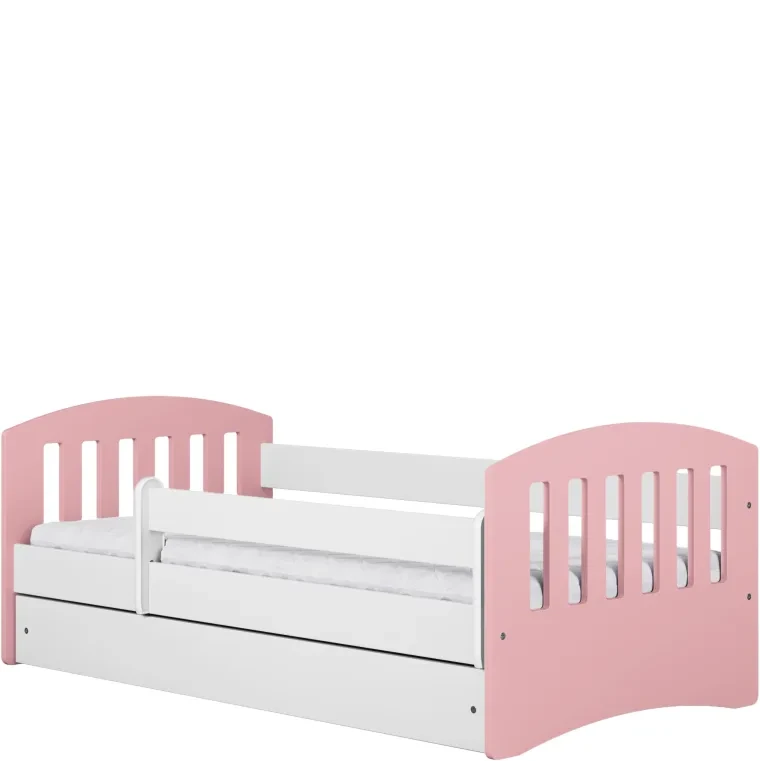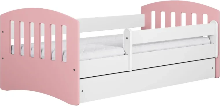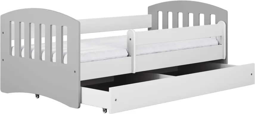 Łóżeczko Classic 1 Mix to klasyczna propozycja komfortowego i bezpiecznego łóżeczka dziecięcego. Korpus łóżeczka wykonany został z wysokiej jakości płyty laminowanej w najgrubszym stosowanym rozmiarze czyli 18mm zaś stelaż wykonany jest z naturalnego drewna sosnowego Solidna budowa oraz zaokrąglone krawędzie gwarantują trwałość i bezpieczeństwo użytkowania. Wykonane z płyty MDF fronty zostały 3-krotnie polakierowane atestowanymi farbami ekologicznymi na żywe i ułatwiające dopasowanie łóżeczka do pokoju dziecięcego kolory. Łóżeczko ma możliwość dokupienia dwudzielnej szuflady oraz posiada ruchomą barierkę o długości 100 cm. Tak szuflada jak barierka może zostać zamontowana po obu stronach mebla. Łóżko posiada certyfikację dlatego jest bezpieczne nawet dla mniejszych dzieci (m.in. nie posiada małych elementów np. jak zaślepki śrub, które dziecko mogłoby zdjąć i połknąć).