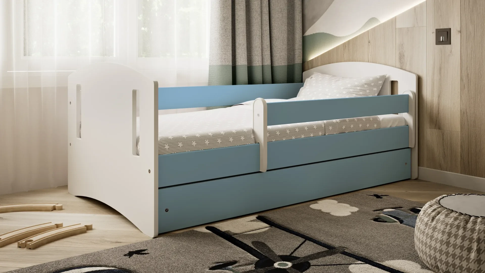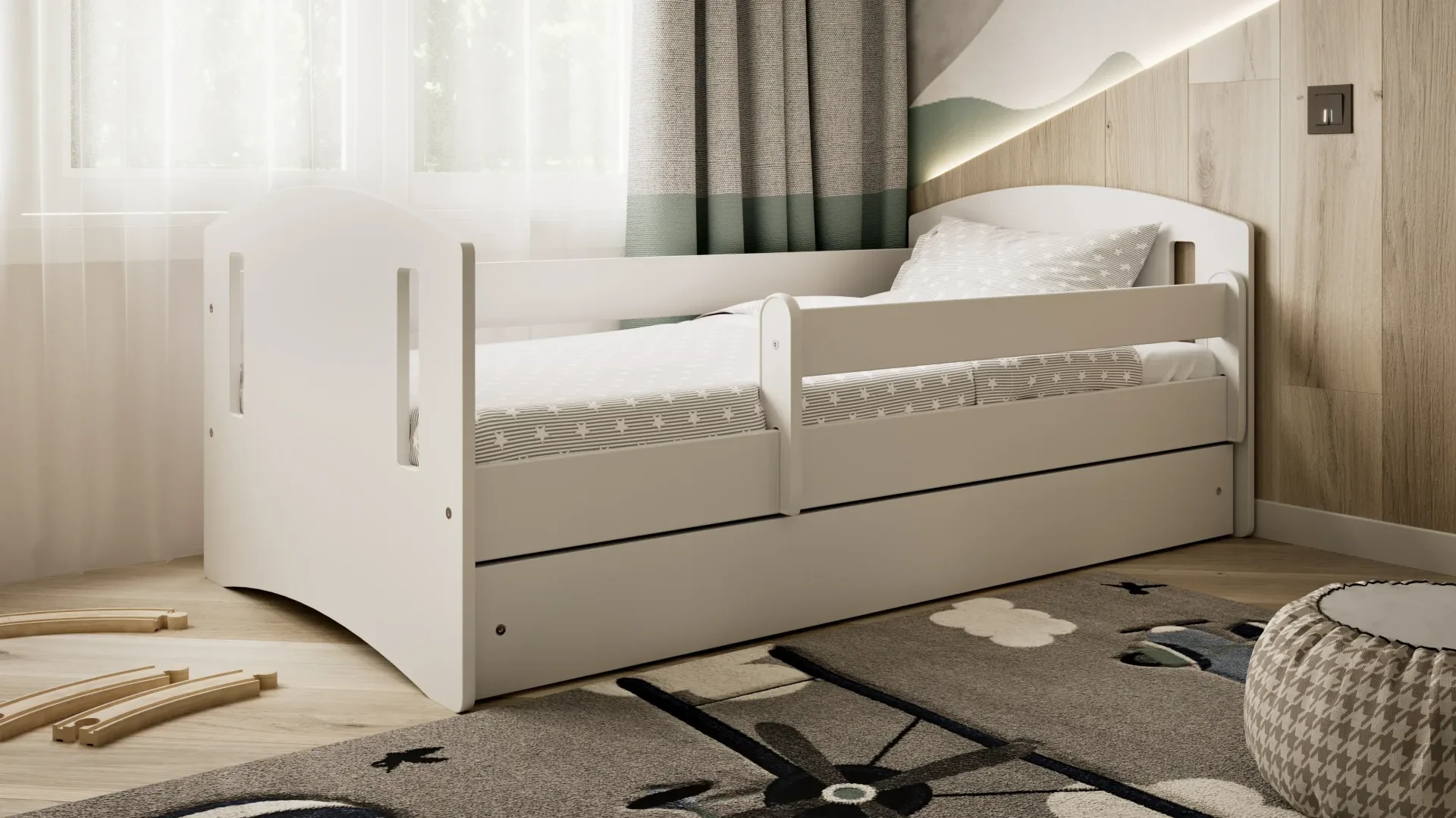 - Przesuwana barierka - zabezpiecza dziecko przed upadkiem w podczas snu