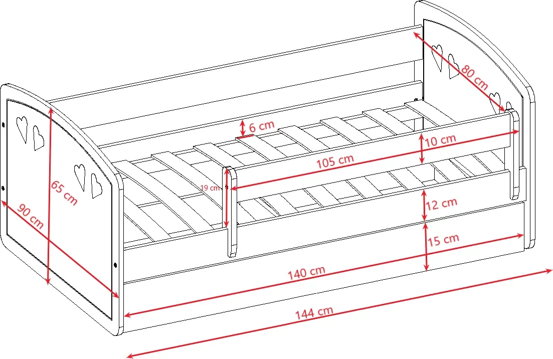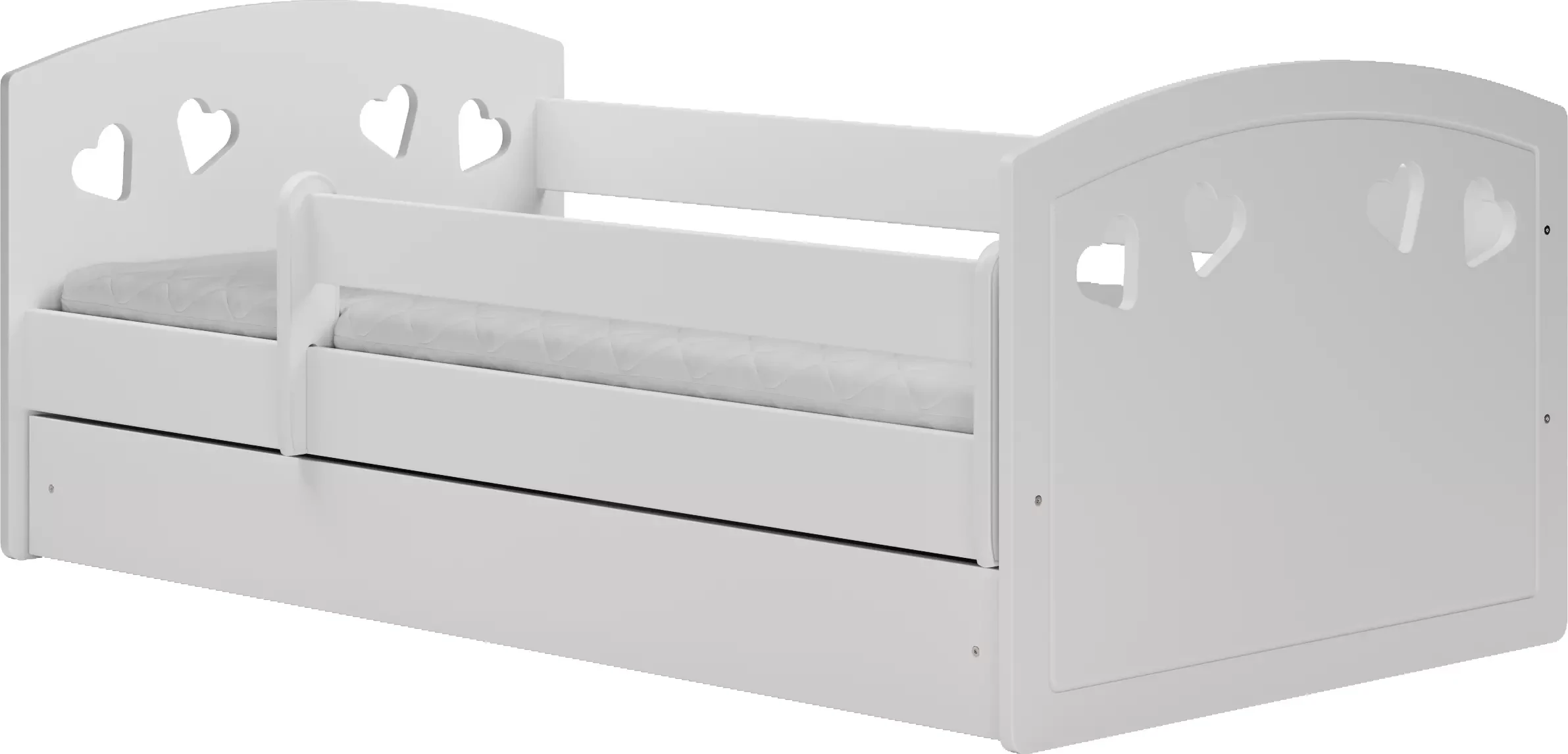 Łóżeczko Julia to ponadczasowa propozycja komfortowego i bezpiecznego łóżka dziecięcego. Korpus łóżeczka wykonany został z wysokiej jakości płyty laminowanej w najgrubszym stosowanym rozmiarze czyli 18 mm, zaś stelaż wykonany jest z naturalnego drewna sosnowego. Solidna budowa oraz zaokrąglone krawędzie gwarantują trwałość i bezpieczeństwo użytkowania. Łóżeczko posiada ruchomą barierkę o długości 100 cm oraz ma możliwość dokupienia dwudzielnej szuflady. Barierka, tak jak i szuflada, mogą zostać zamontowane po obu stronach mebla. Montaż łóżeczka odbywa się przy użyciu specjalnych śrub ściągających, dzięki którym wytrzymuje ono obciążenie do 100 kg. Łóżko posiada certyfikację dlatego jest bezpieczne nawet dla mniejszych dzieci (m.in. nie posiada małych elementów np. jak zaślepki śrub, które dziecko mogłoby zdjąć i połknąć).