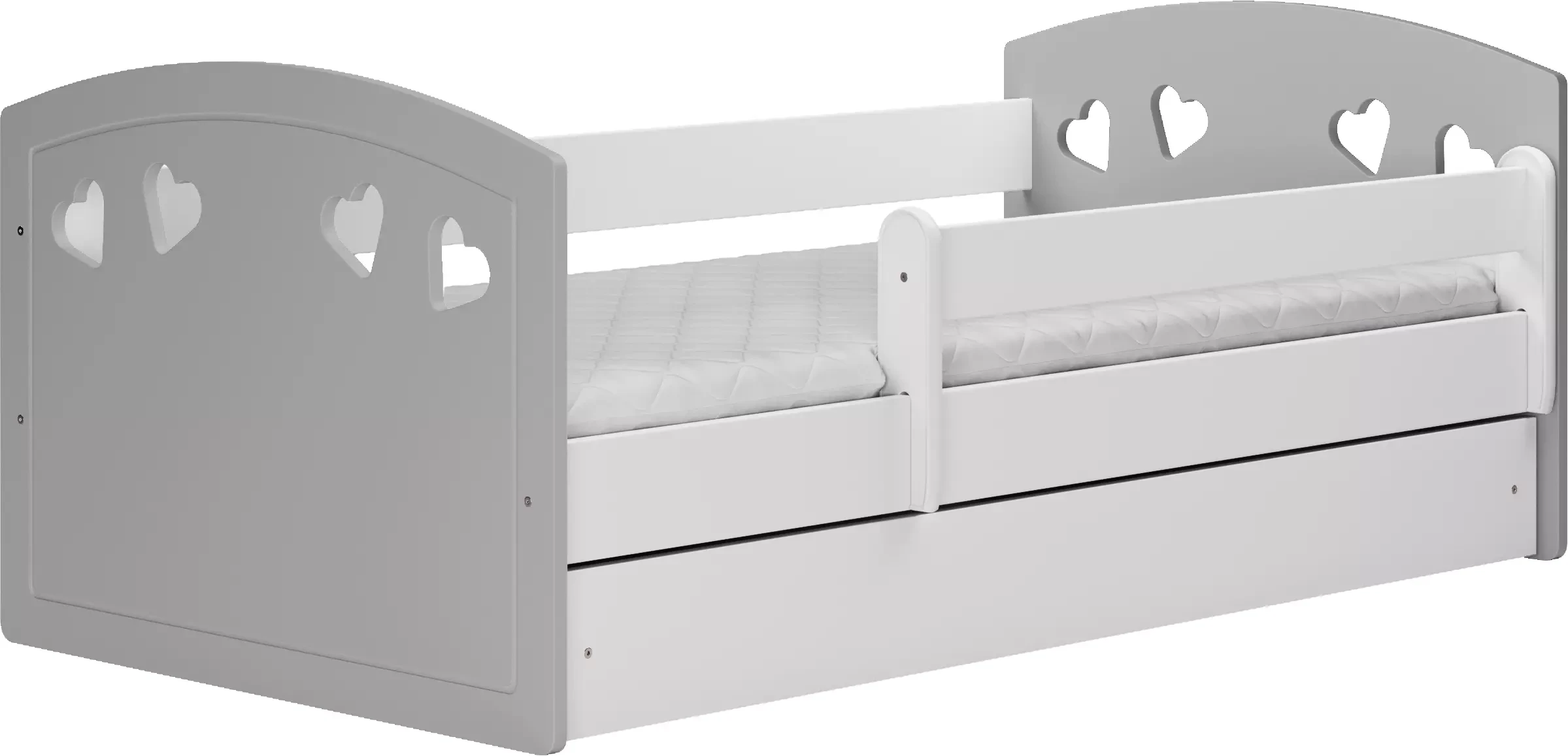 Łóżeczko Julia Mix to ponadczasowa propozycja komfortowego i bezpiecznego łóżka dziecięcego. Korpus łóżeczka wykonany został z wysokiej jakości płyty laminowanej w najgrubszym stosowanym rozmiarze czyli 18 mm, zaś stelaż wykonany jest z naturalnego drewna sosnowego. Solidna budowa oraz zaokrąglone krawędzie gwarantują trwałość i bezpieczeństwo użytkowania. Wykonane z płyty MDF fronty zostały 3-krotnie polakierowane atestowanymi farbami ekologicznymi. Łóżeczko posiada ruchomą barierkę o długości 100 cm oraz ma możliwość dokupienia dwudzielnej szuflady. Barierka, tak jak i szuflada, mogą zostać zamontowane po obu stronach mebla. Montaż łóżeczka odbywa się przy użyciu specjalnych śrub ściągających, dzięki którym wytrzymuje ono obciążenie do 100 kg. Łóżko posiada certyfikację dlatego jest bezpieczne nawet dla mniejszych dzieci (m.in. nie posiada małych elementów np. jak zaślepki śrub, które dziecko mogłoby zdjąć i połknąć).