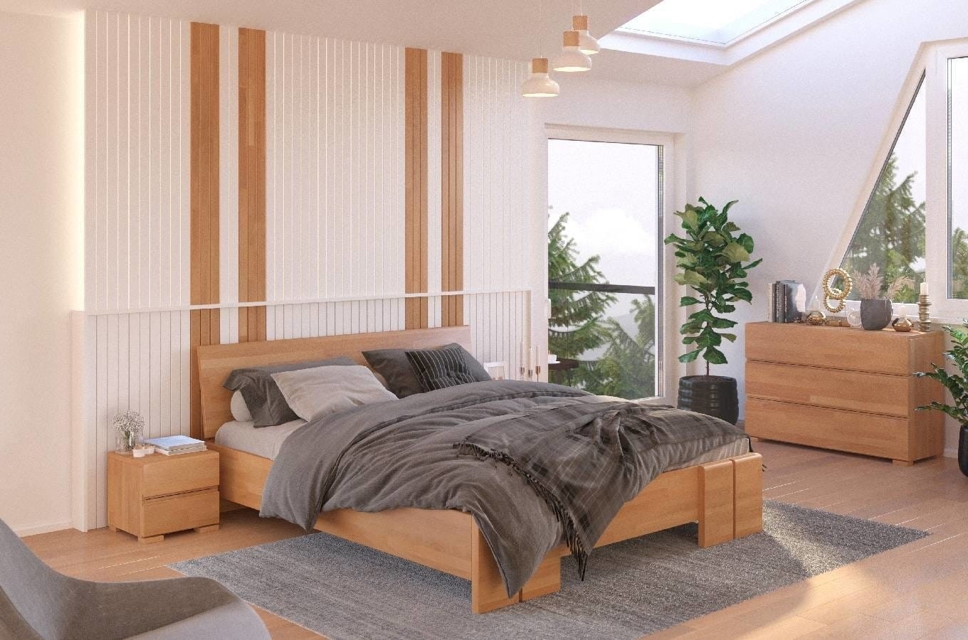 Łóżko drewniane Skandica VESTRE Maxi doskonale komponuje się z klasycznym wystrojem wnętrz, a jego niebanalnie prosta forma współgra z dowolnymi dodatkami. Świetnie komponuje się z pozostałymi meblami z kolekcji VESTRE.