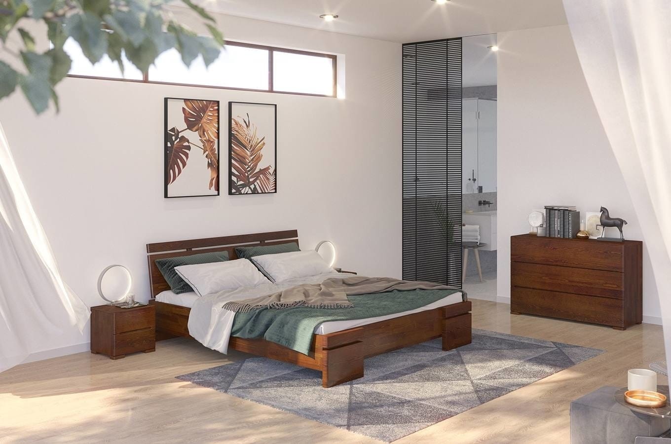Model łóżka na specjalne wymagania – wyższy od większości i wydłużony – dla zwiększenia komfortu snu osób o większym wzroście. To łóżko powstało z myślą o sypialniach, w których potrzebny jest piękny, ale niezbyt nachalny model, który zapewni użytkownikowi dużą swobodę aranżacyjną. To prosta forma, dopracowane detale i piękno w uniwersalnym wydaniu. Front łóżka to drewniany element, na którym osadzono mocne nogi. Wykonano je z dwóch części – dolnej, wysokiej i górnej, węższej. Pomiędzy nimi miejsce znalazło ażurowe wycięcie, sięgające do końca boku, dodające subtelnej lekkości. Dodają jej także zaokrąglone narożniki łóżka. Do nóg wizualnie nawiązuje także pochylone wezgłowie. Podzielone na dwa poziome elementy – wyższy dolny i niższy górny, pomiędzy nimi wykonano taką samą, nadającą zwiewnej subtelności przerwę. Sparta Maxi Long to łóżko, które pasuje nie tylko do pozostałych mebli z kolekcji, ale daje także daleko idącą swobodę w doborze innych dodatków. Świetnie zgrywa się z wnętrzami nowoczesnymi, ale pasuje także do klasycznych.