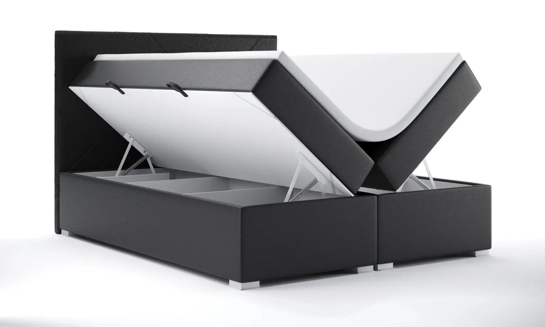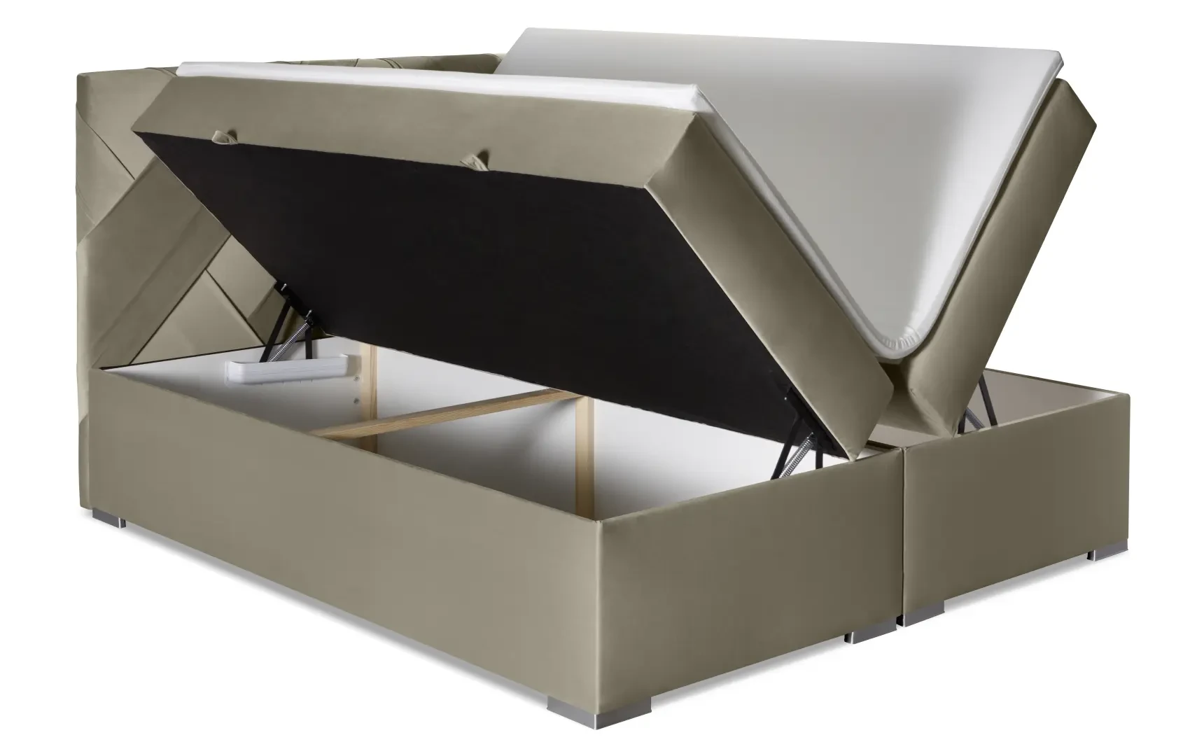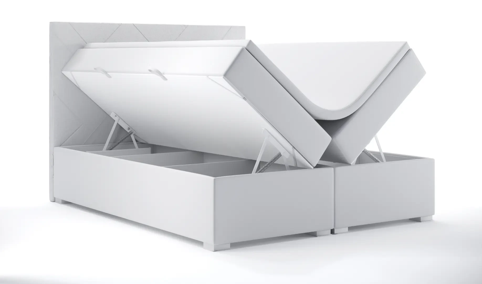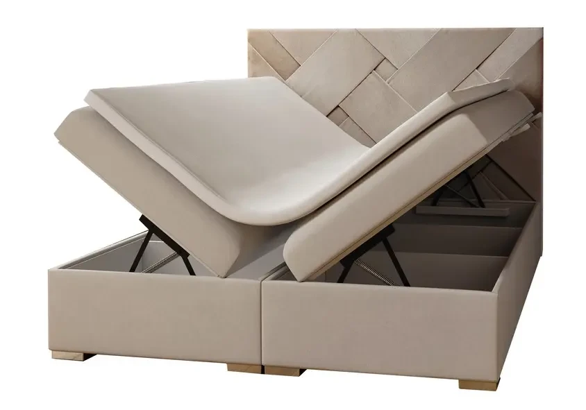 Niezależne materace ze sprężynami typu bonell oraz pianką T-25 jak i wierzchni topper z pianki T-21 zapewniają idealne dopasowanie do kształtu ciała. Dostęp do pojemnych schowków na pościel ułatwiają bezpieczne automaty. Duża wysokość powierzchni spania zmniejsza wysiłek wstawania z łóżka (co jest doskonałą informacja dla osób starszych) oraz sprawia, że w strefie snu znajduje się znacznie mniej roztoczy i zanieczyszczeń, niż w przypadku łóżek niższych. Nie licząc wezgłowia cała powierzchnia łóżka to materac dzięki czemu łóżko zachowuje kompaktowe rozmiary ułatwiając jego wpasowanie nawet w ciaśniejsze sypialnie mieszkań miejskiej dżungli.