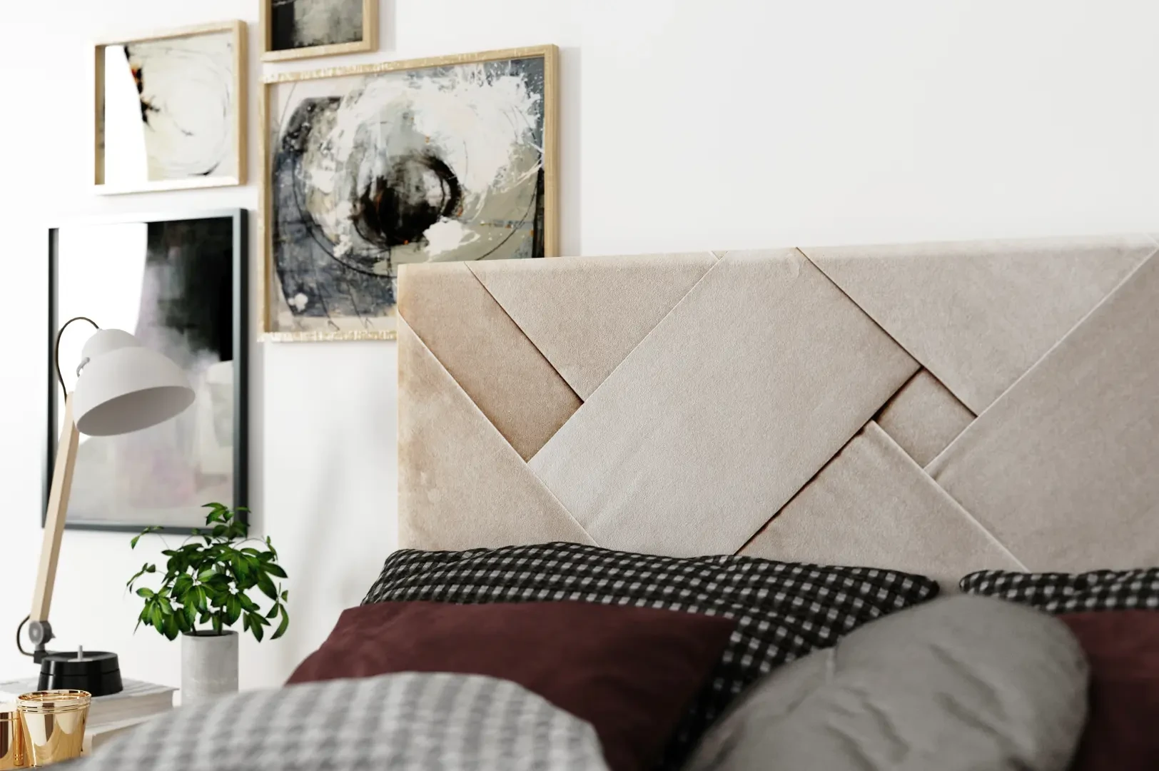 - Wezgłowie z przekładanymi szalami z tkaniny - miękkie, eleganckie i bezpieczne w użytkowaniu
